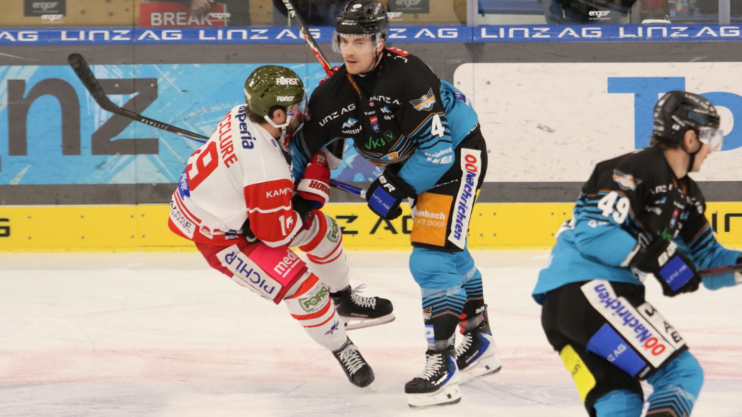 Brad McClure #19, Ryan MacKinnon #4, Graham Knott #49, ICEHL Round 23 Black Wings Linz – HCB Südtirol, Linz AG Eisarena, © Puckfans.at / Andreas Robanser