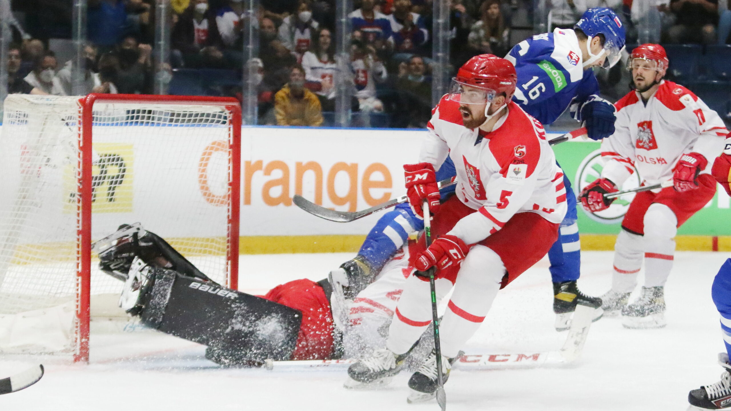 6T4A0483 27. August 2021 2560 × 1440 6T4A0483 Olympic Qualification Men SVK – POL Filip Komorski #5, Robert Lantosi #16, Zimny Stadion Ondreja Nepelu © Puckfans.at/Andreas Robanser