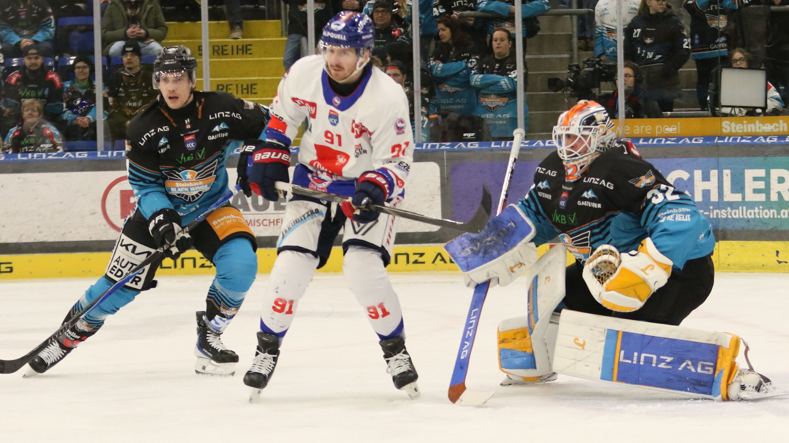 6T4A0537 3. Dezember 2025 2560 × 1440 6T4A0537 Matt Wilkins #91, Rasmus Tirronen #32, ICEHL Round 26 Black Wings Linz – HC Innsbruck , Linz AG Eisarena, © Puckfans.at / Andreas Robanser