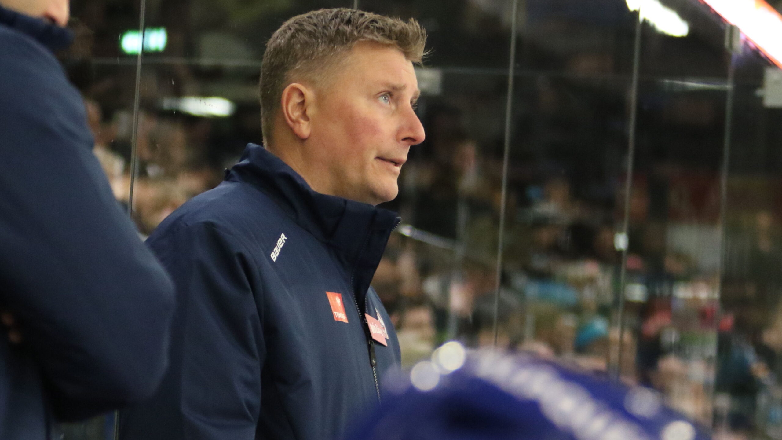 6T4A0641 3. Dezember 2025 2560 × 1440 6T4A0641 HC Innsbruck Head Coach Ryan Kinasewich, ICEHL Round 26 Black Wings Linz – HC Innsbruck , Linz AG Eisarena, © Puckfans.at / Andreas Robanser