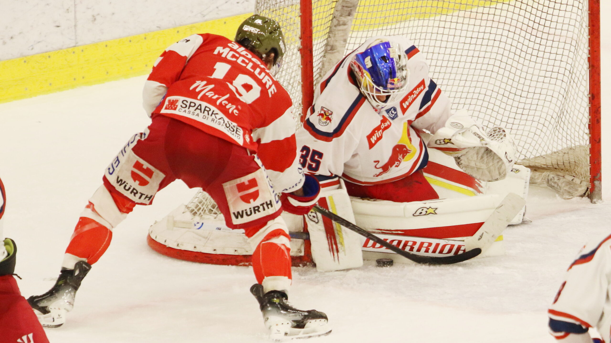 Brad McClure #19, Atte Tolvanen #35, ICEHL Playoff Semifinale Game 3 EC Red Bull Salzburg – HCB Südtirol, Eisarena Salzburg, © Puckfans.at / Andreas Robanser