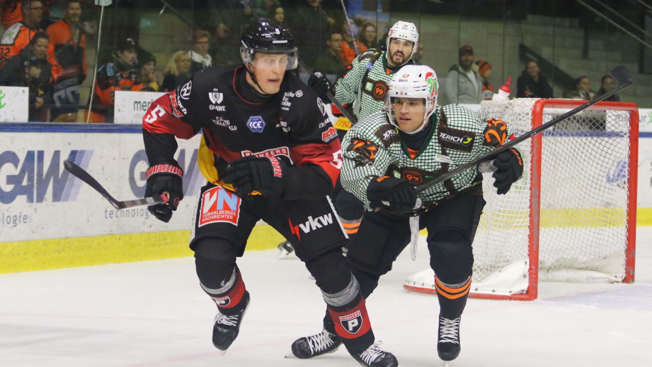 Jacob Lundegård #5, Kevin Roy #23, ICEHL Round 15: Graz99ers – Pioneers Vorarlberg, Merkur Eisstadion Graz, © Puckfans.at / Andreas Robanser
