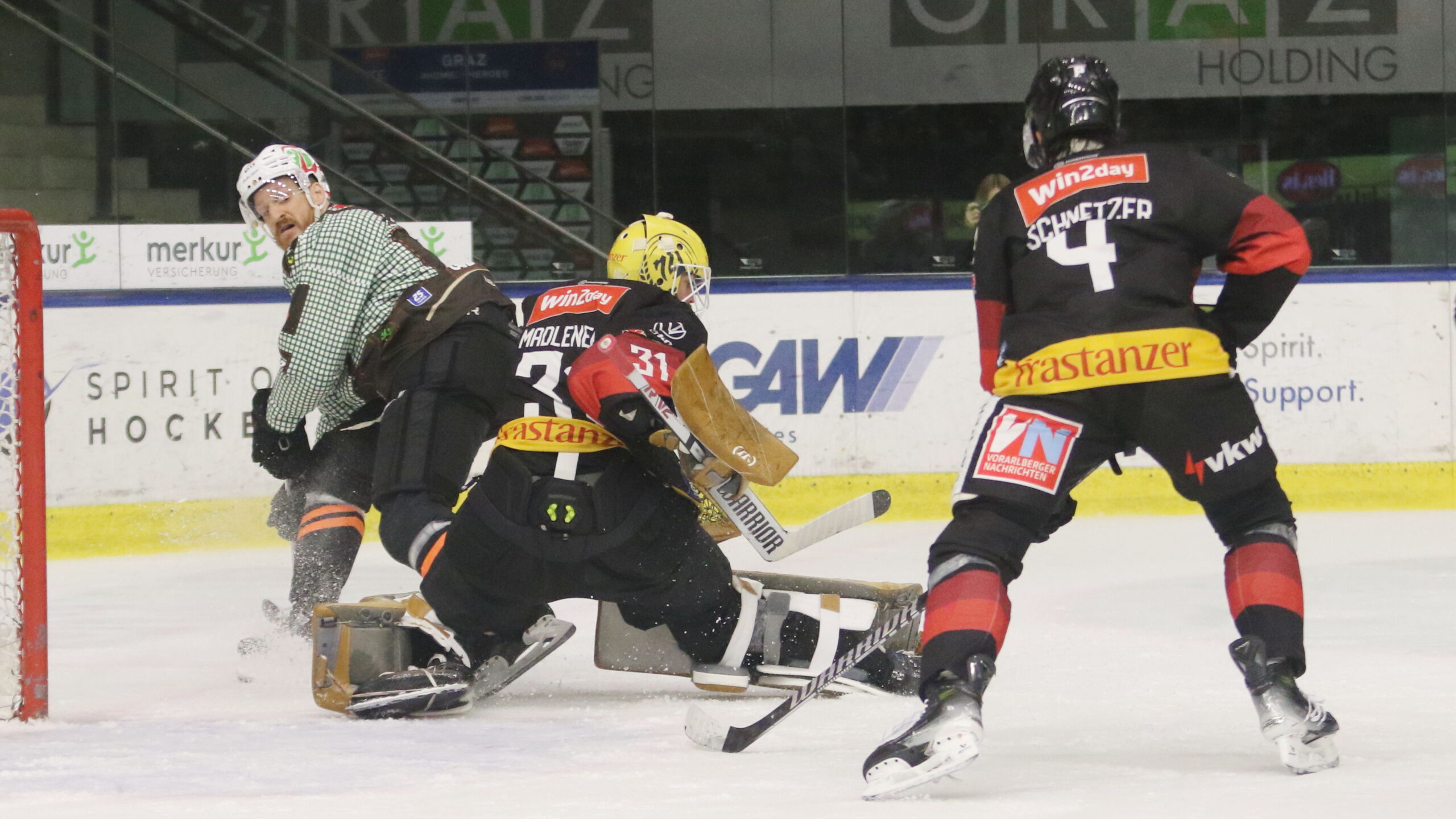 Korbinian Holzer #4, David Madlener #31, Ramón Schnetzer #4, ICEHL Round 15: Graz99ers – Pioneers Vorarlberg, Merkur Eisstadion Graz, © Puckfans.at / Andreas Robanser