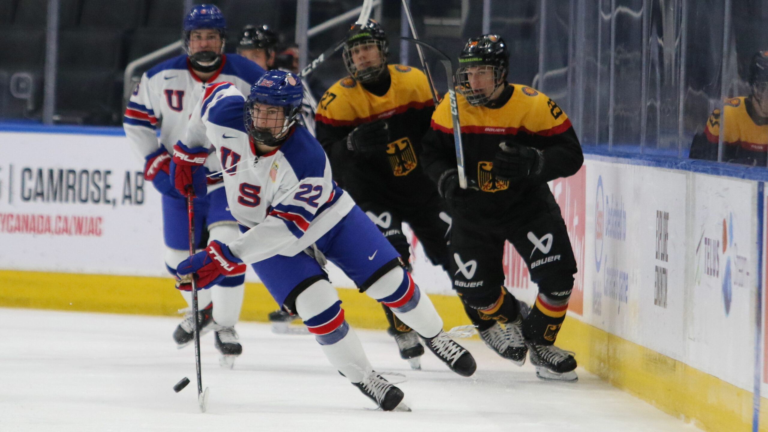 6T4A0880 8. August 2024 2560 × 1440 6T4A0880 Hlinka Gretzky Cup 2024 USA – GER Matthew Lansing #22, Rihards Griva #27 Rogers Place Edmonton, © Puckfans.at / Andreas Robanser