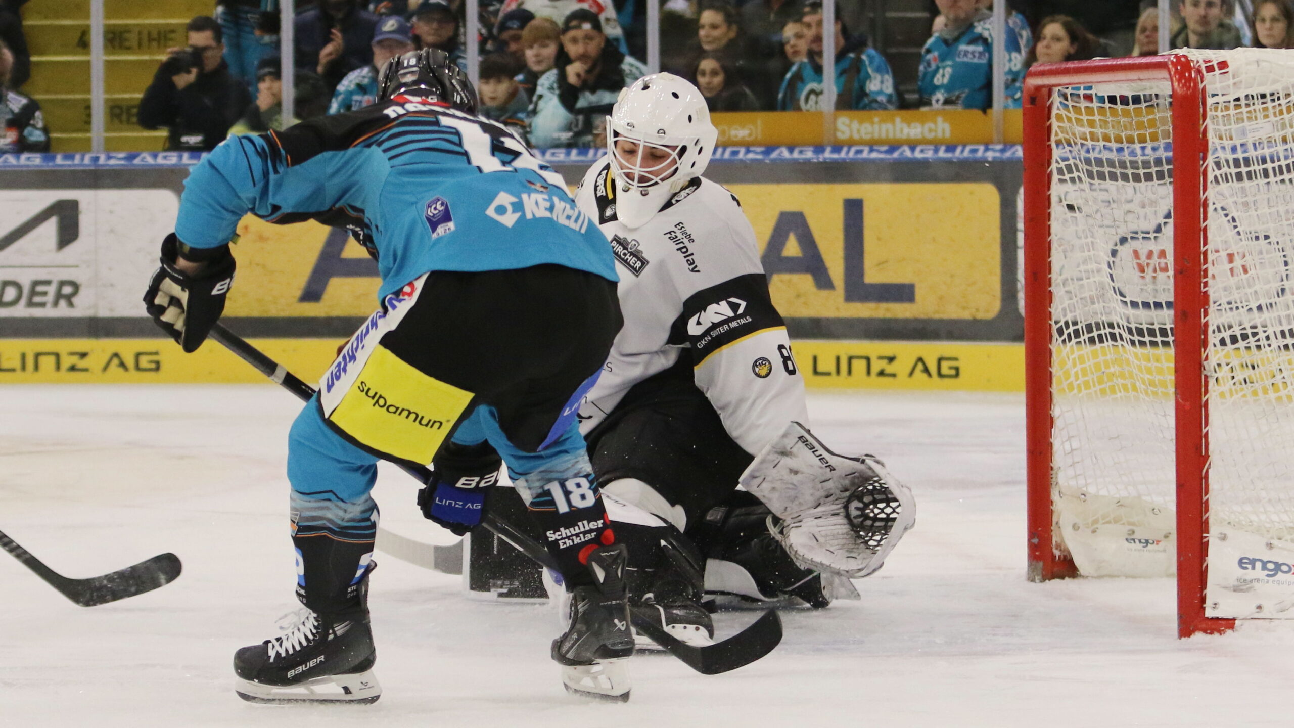 6T4A0990 6. Dezember 2025 2560 × 1440 6T4A0990 Ken Ograjensek #18, Eddie Pasquale #80, ICEHL Round 28 Black Wings Linz – HC Pustertal, Linz AG Eisarena, © Puckfans.at / Andreas Robanser