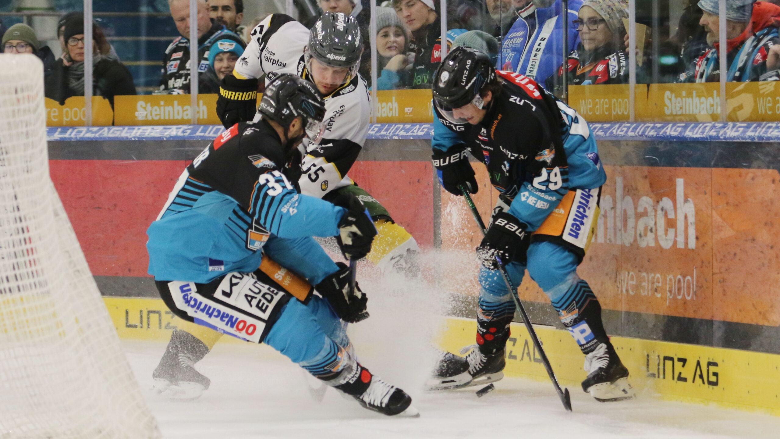 6T4A1021 6. Dezember 2025 2560 × 1440 6T4A1021 Andreas Kristler #37, Luca Zanatta #55, Aljaz Predan #29, ICEHL Round 28 Black Wings Linz – HC Pustertal, Linz AG Eisarena, © Puckfans.at / Andreas Robanser