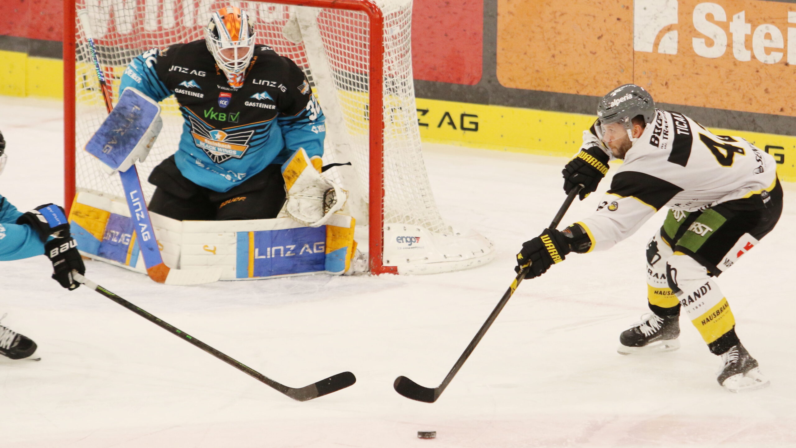 6T4A1070 6. Dezember 2025 2560 × 1440 6T4A1070 Rasmus Tirronen #32, Rok Ticar #40, ICEHL Round 28 Black Wings Linz – HC Pustertal, Linz AG Eisarena, © Puckfans.at / Andreas Robanser