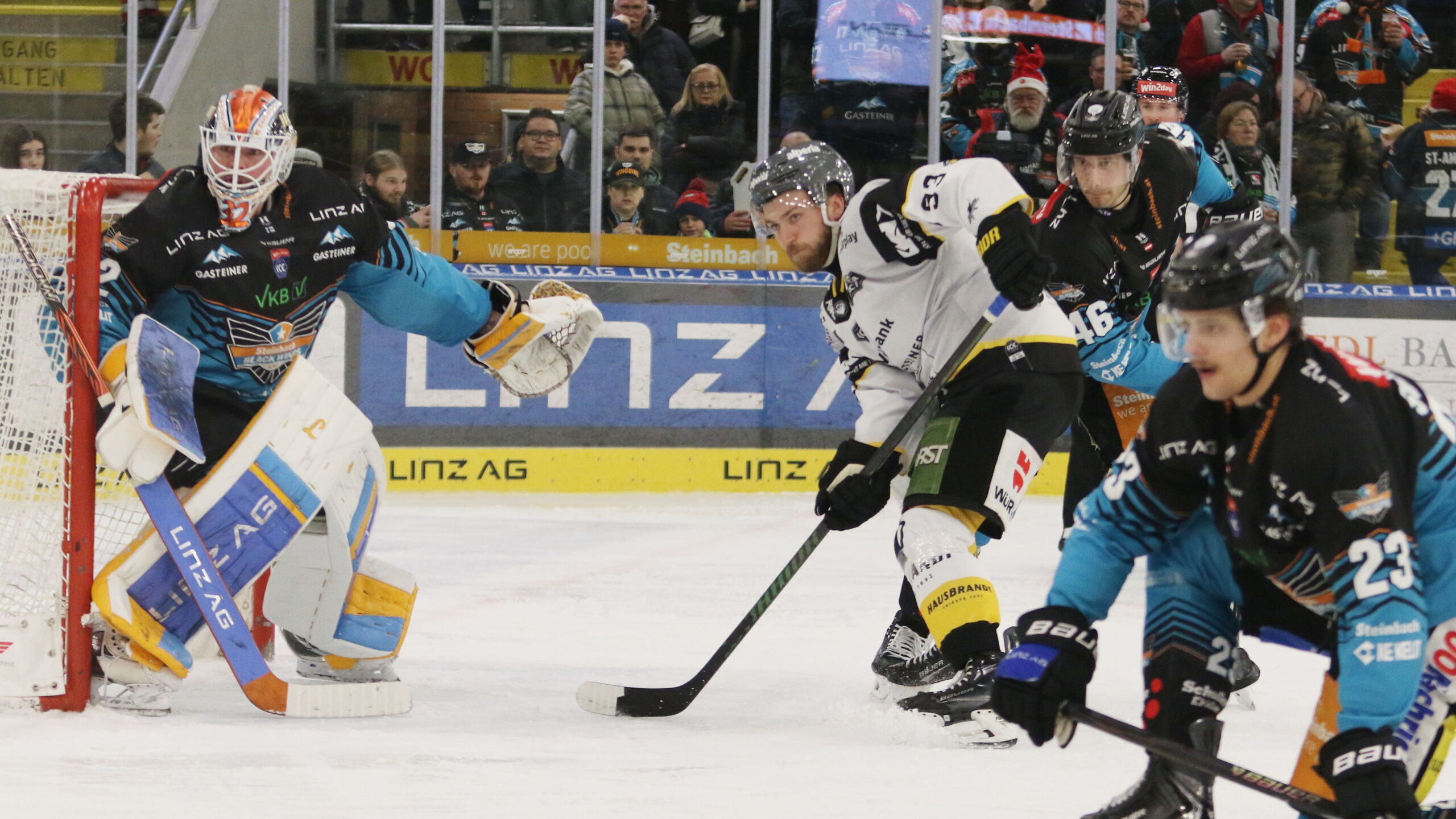 6T4A1208 6. Dezember 2025 2560 × 1440 6T4A1208 Rasmus Tirronen , JC Lipon #93, Niklas Würschl #46, ICEHL Round 28 Black Wings Linz – HC Pustertal, Linz AG Eisarena, © Puckfans.at / Andreas Robanser