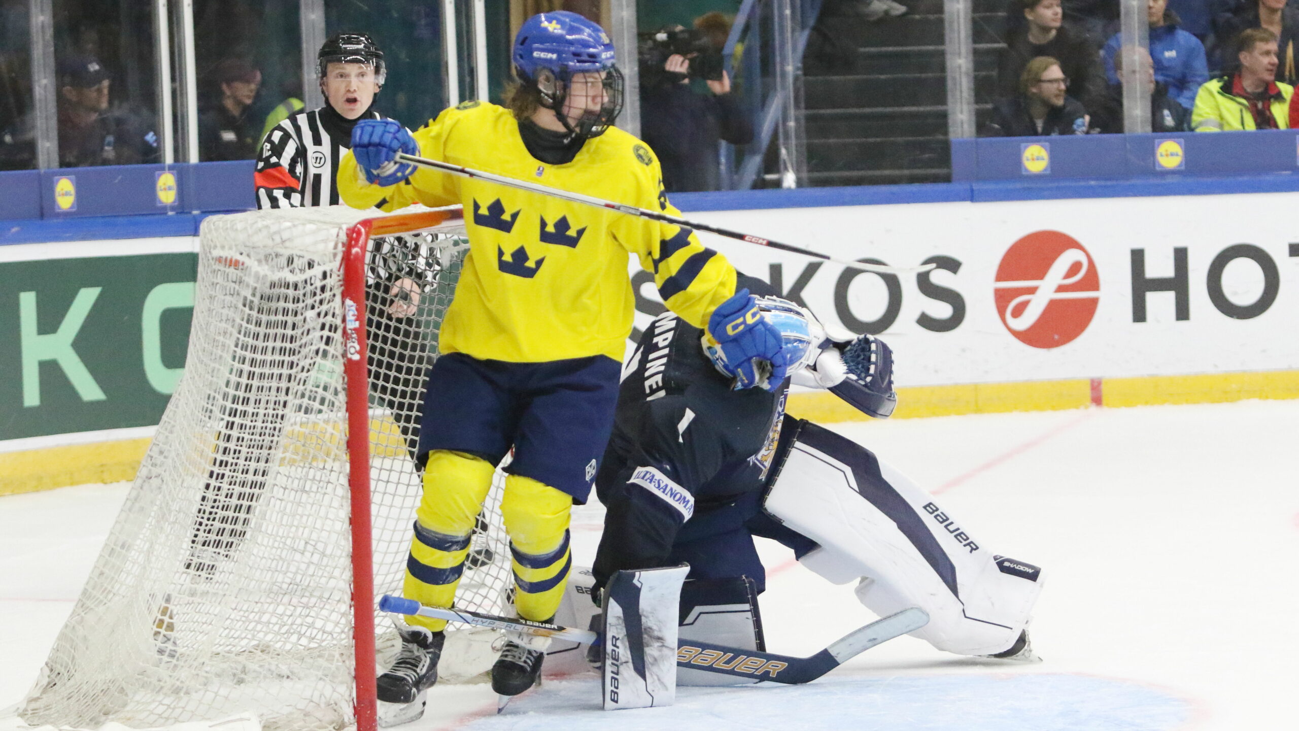 6T4A1520 2. Mai 2024 2560 × 1440 6T4A1520 IIHF U18 World Championship 2024 QF FIN – SWE Valter Lindberg #15, Petteri Rimpinen #1 Metro Arena, Espoo FIN © Puckfans.at / Andreas Robanser
