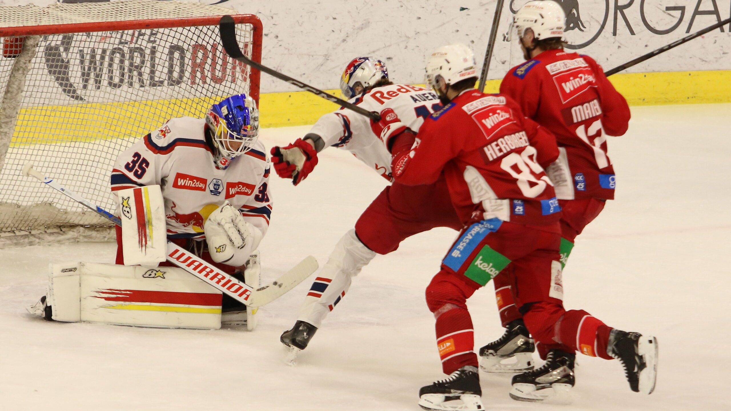 Atte Tolvanen #35, Luca Auer #16, Raphael Herburger #89, David Maier #12, ICEHL Final Game 2, EC Red Bull Salzburg – EC KAC, Eisarene Salzburg, © Puckfans.at / Andreas Robanser