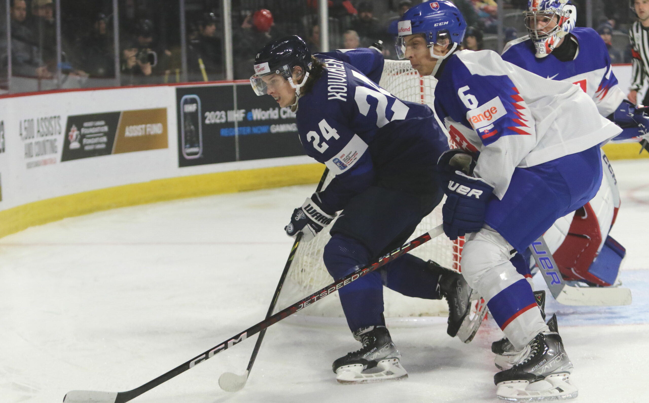 6T4A1627 27. Dezember 2022 2560 × 1591 6T4A1627 IIHF World Juniors 2023 FIN – SVK Ville Koivunen #24, Viliam Kmec #6, Patrik Andrisik #1 Avenir Centre, Moncon, © Puckfans.at / Andreas Robanser