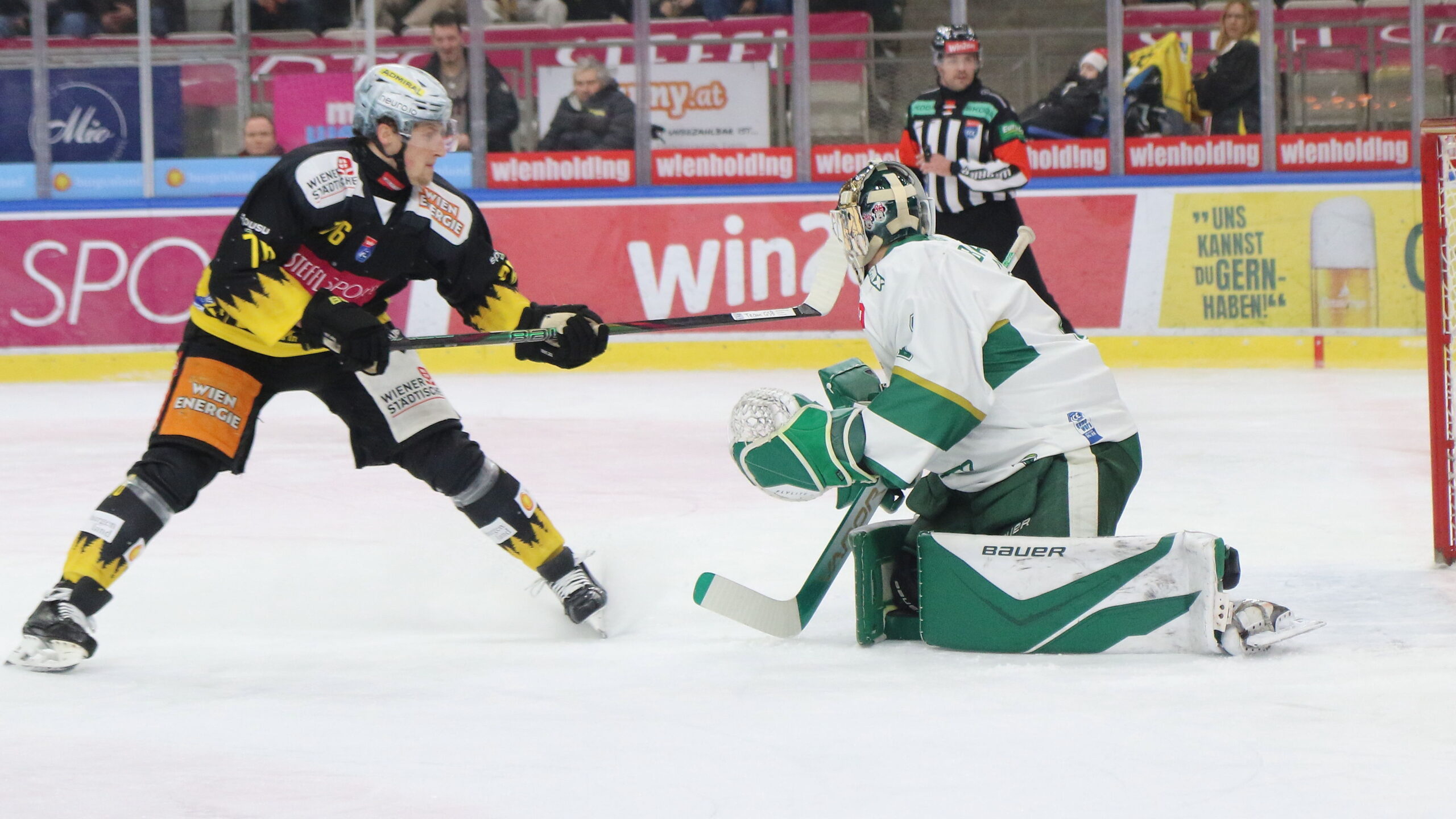 Sam Antonitsch #76, Bence Balizs #1, ICEHL Round 29 Vienna Capitals – Ferencvarosi TC, Steffl Arena, © Puckfans.at / Andreas Robanser