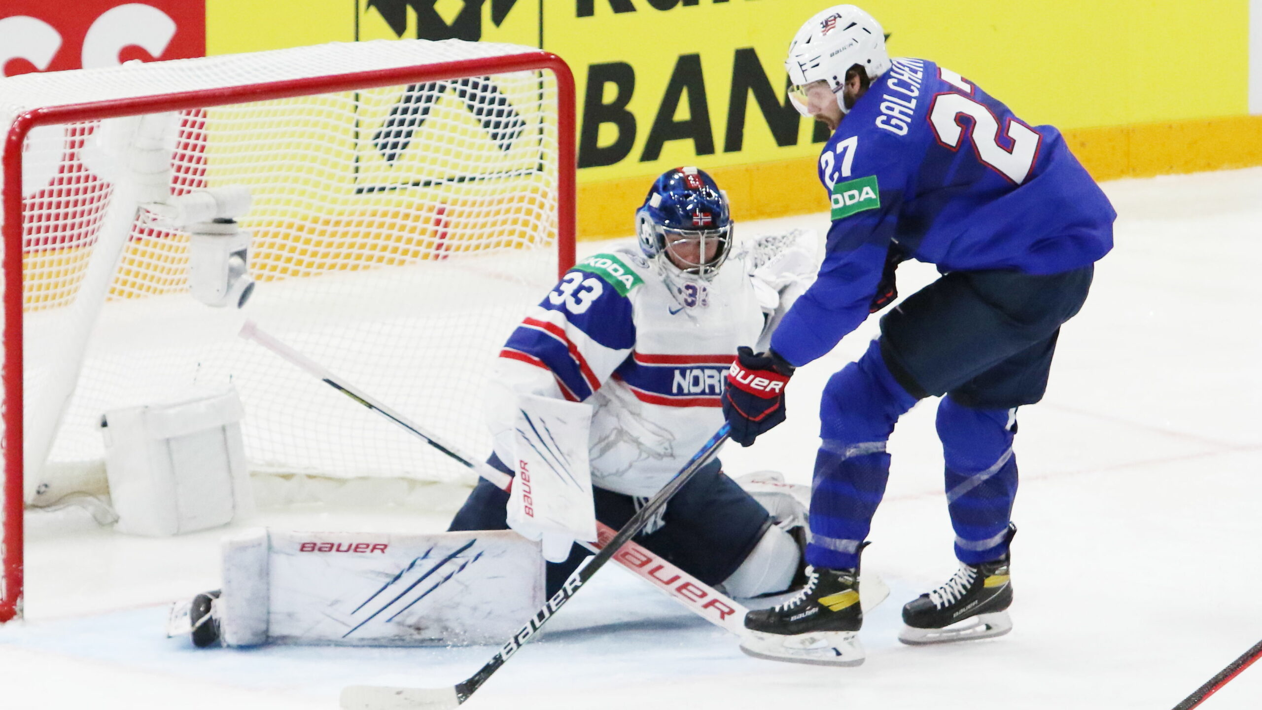 6T4A1732 24. Mai 2022 2560 × 1440 6T4A1732 IIHF Ice Hockey World Championship 2022, USA – NOR Henrik Haukeland #33, Alex Galchenyuk #27 Nokia Arena, Tampere © Puckfans.at/Andreas Robanser
