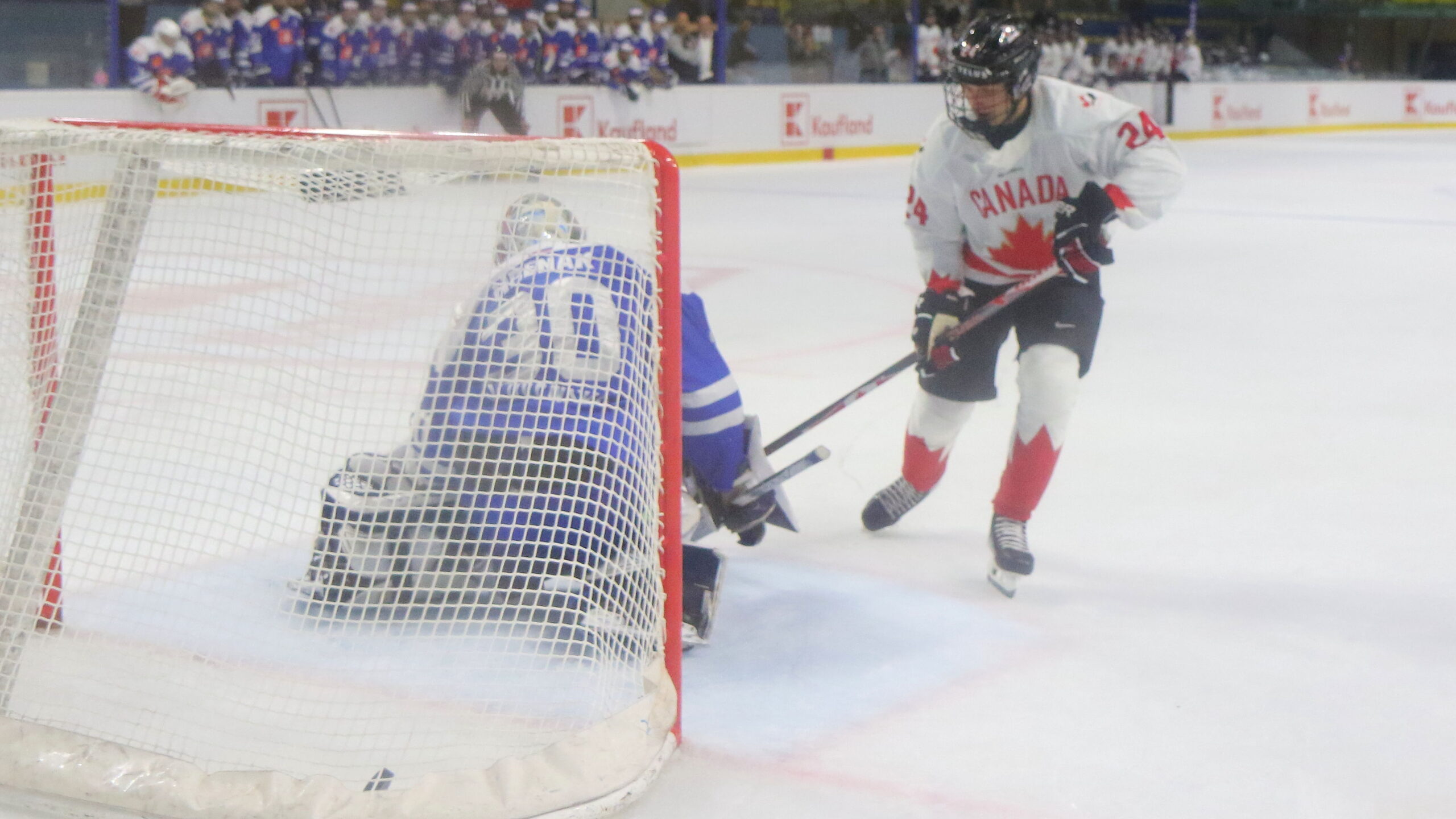 Samuel Hrenak #30, Dimian Zhilkin #24, Pre Game Hlinka Gretzky Cup 2025, SVK – CAN, ZS Piestany, © Puckfans.at / Andreas Robanser