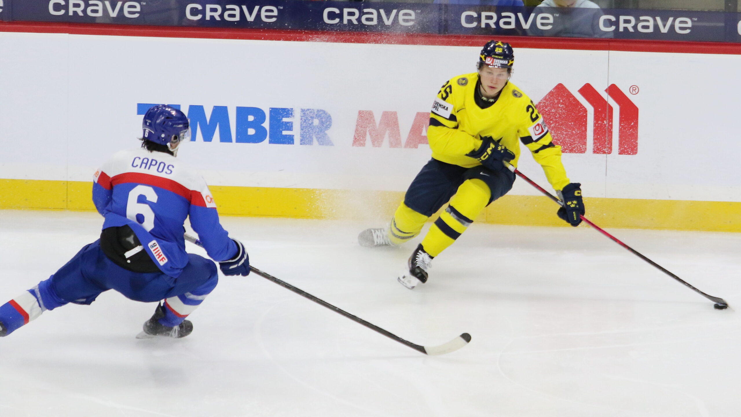 Michal Capos #6, Eddie Genborg #25, World Juniors 2026 SWE -SVK, Grand Casino Arena, Saint Paul © Puckfans.at / Andreas Robanser