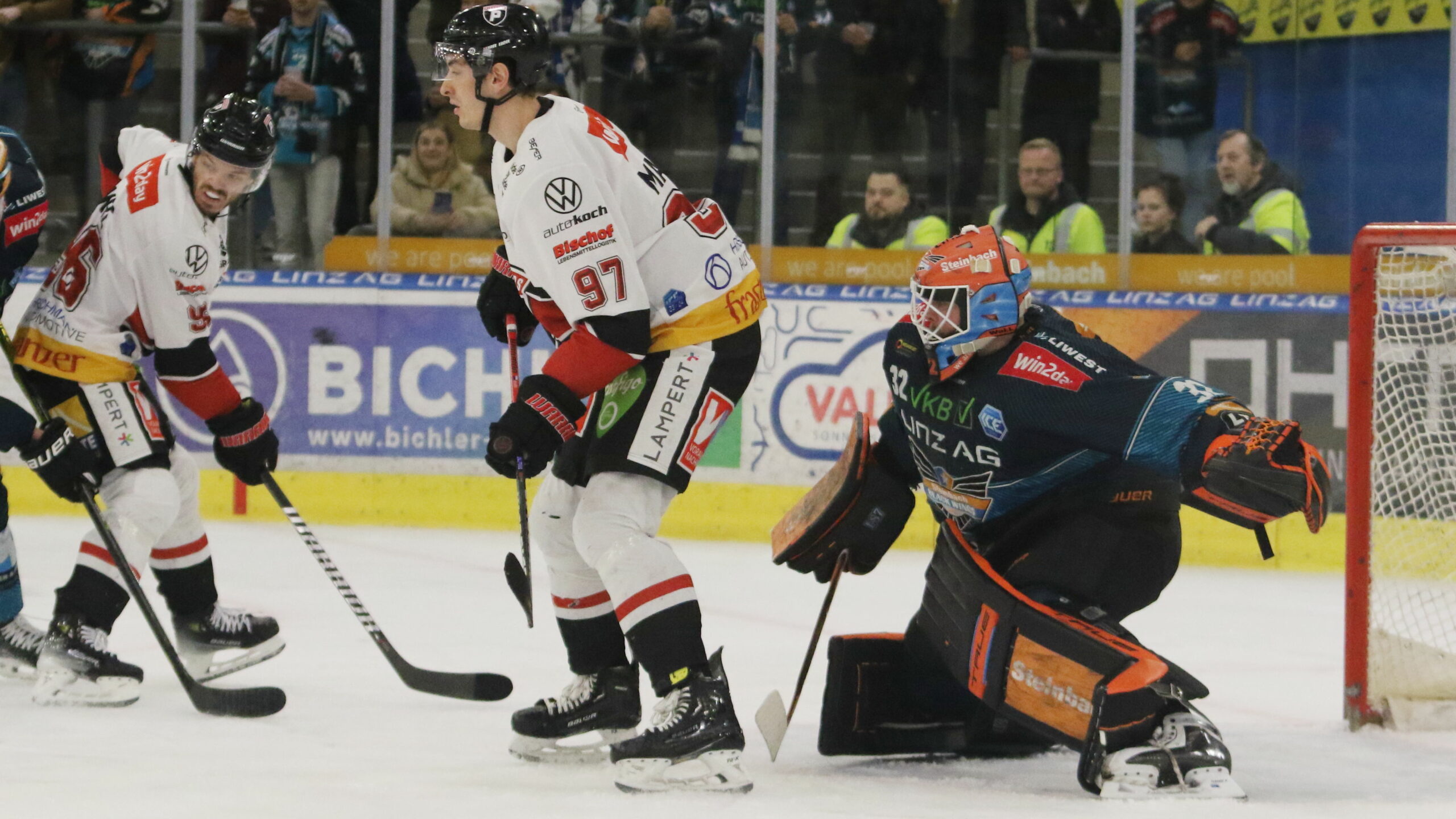 6T4A2133 13. Februar 2024 2560 × 1440 6T4A2133 ICEHL Round 48 Black Wings Linz – Pioneers Vorarlberg Luka Maver #97, Rasmus Tirronen #32 Linz AG Eisarena, © Puckfans.at / Andreas Robanser