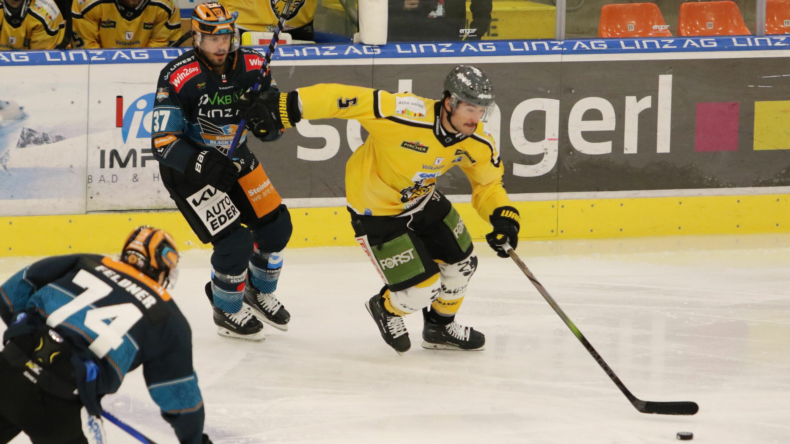 6T4A2472 24. September 2023 2560 × 1440 6T4A2472 ICEHL Round 4 Black Wings Linz – HC Pustertal Nico Feldner #74, Andreas Kristler #37, Joel Messner #5 Linz AG Eisarena, © Puckfans.at / Andreas Robanser