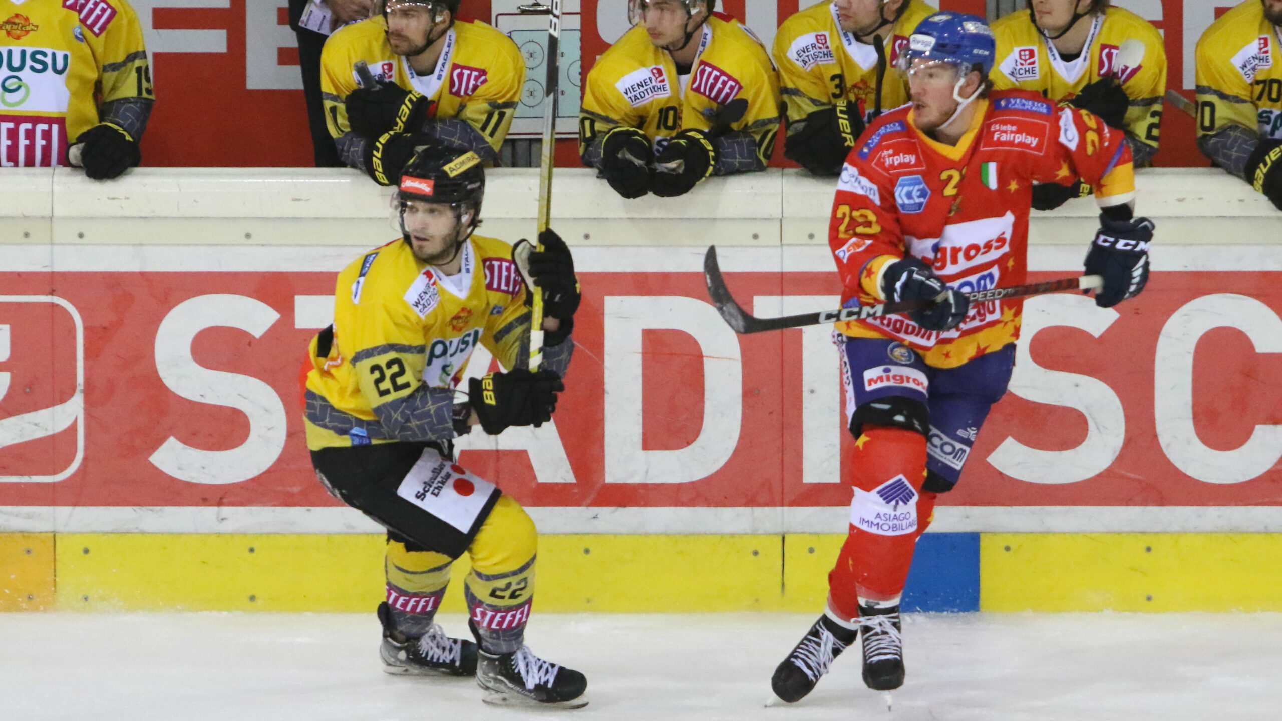 6T4A3181 22. Januar 2023 2560 × 1440 6T4A3181 Vienna Capitals – Asiago Hockey Max Zimmer #22, Troy Rutkowski #29 Steffl Arena, Wien © Puckfans.at / Andreas Robanser