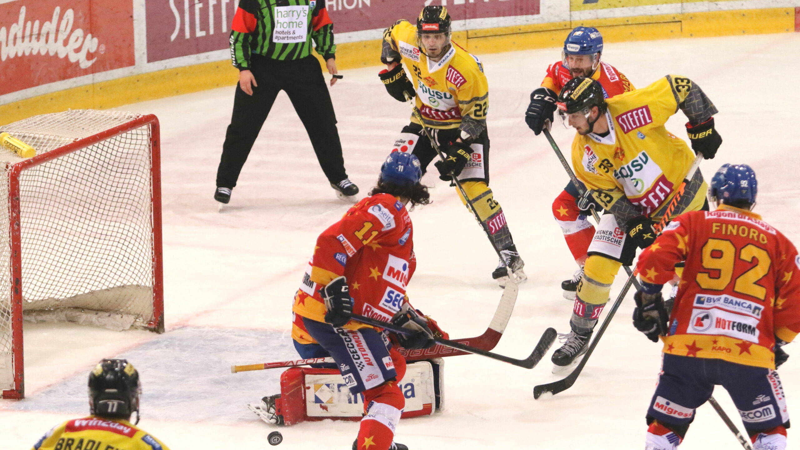 6T4A3265 22. Januar 2023 2560 × 1440 6T4A3265 Vienna Capitals – Asiago Hockey Matt Bradley #77, Giovanni Vallati #11, Max Zimmer #22, Darik Angeli #33, Giordano Finoro #92 Steffl Arena, Wien © Puckfans.at / Andreas Robanser