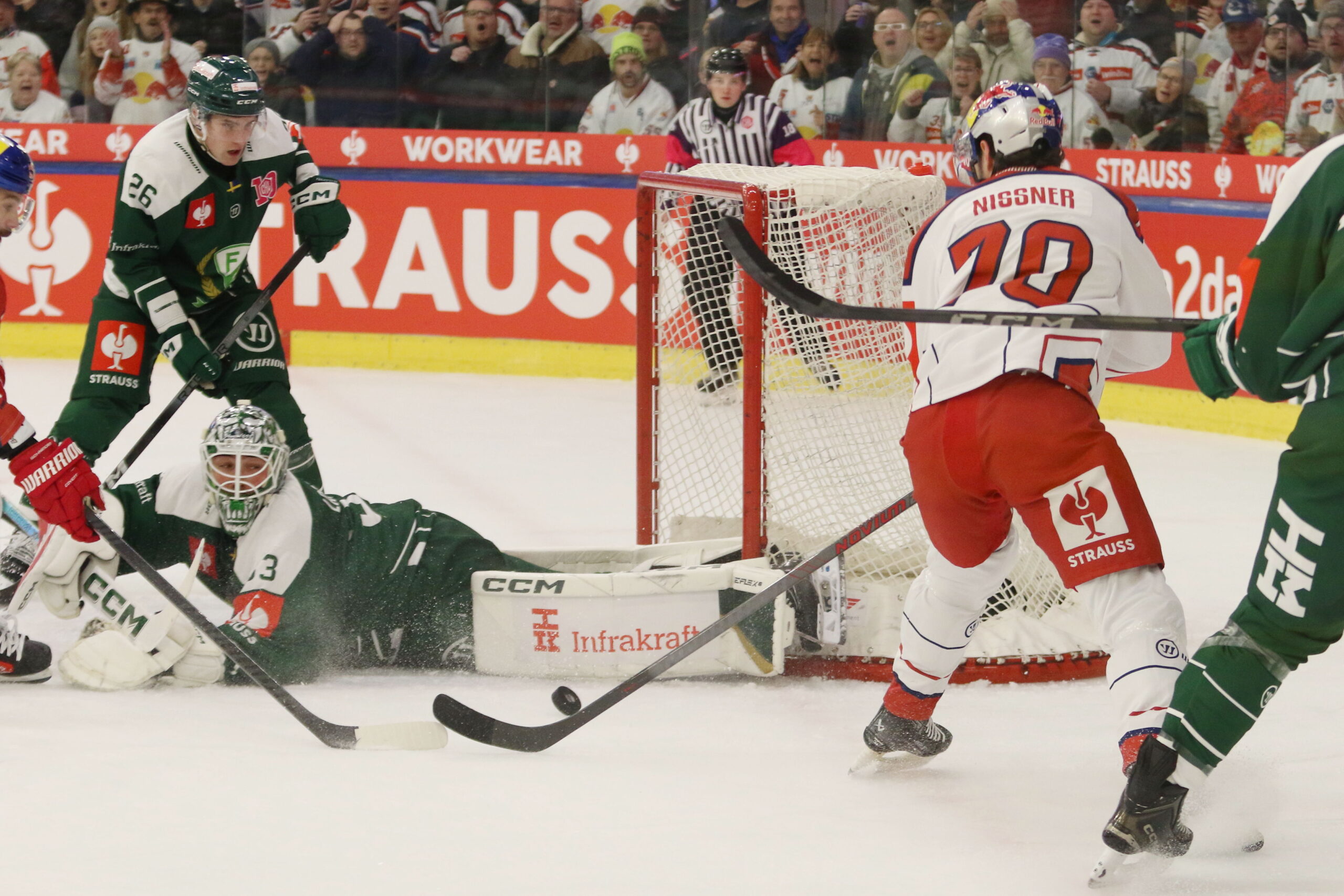 Joel Nyström #26, Maxime Lagacé #33, Benjamin Nissner #70, ,Champions Hockey League 1/4Final: EC Red Bull Salzburg – Färjestad BK © Puckfans.at / Andreas Robanser
