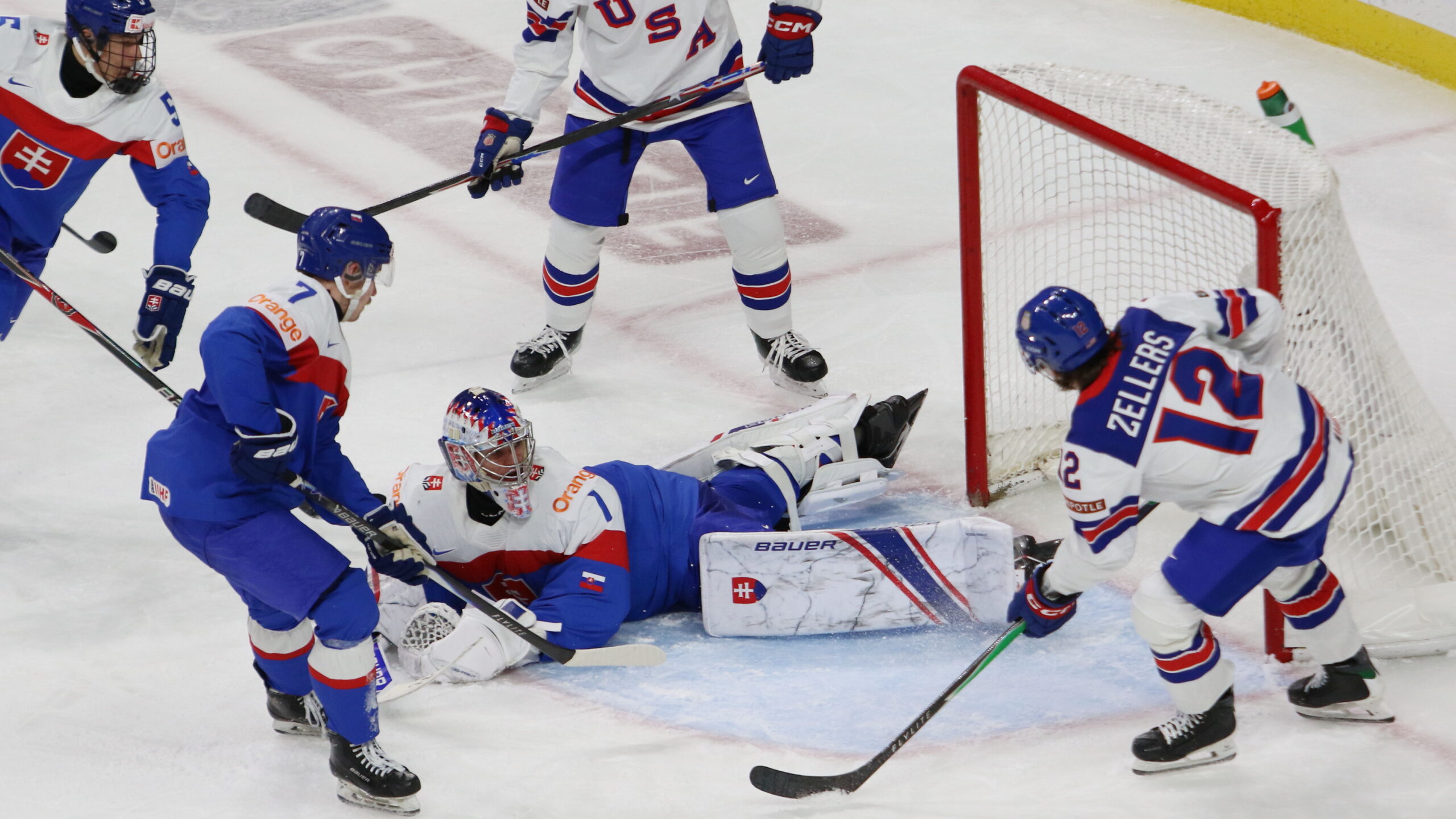 Adam Kalman #7, Michal Pradel #1, Will Zellers #12, World Juniors 2026 SVK – USA, Grand Casino Arena, Saint Paul © Puckfans.at / Andreas Robanser