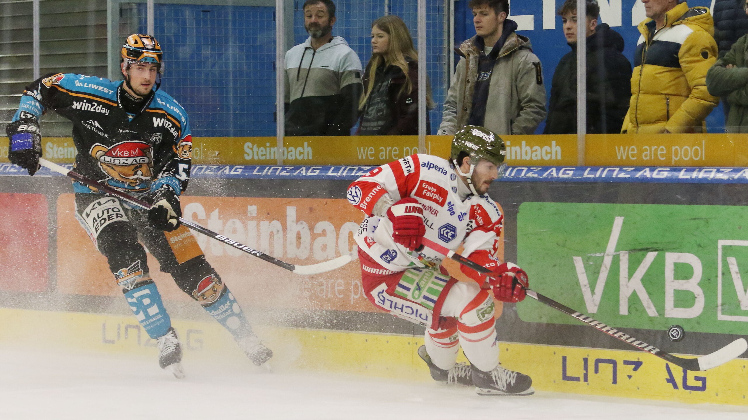 6T4A4403 6. Dezember 2024 2560 × 1440 6T4A4403 Raphael Wolf #5, Daniel Mantenuto #9, ICEHL Round 26 Black Wings Linz – HCB Südtirol, Linz AG Arena, © Puckfans.at / Andreas Robanser