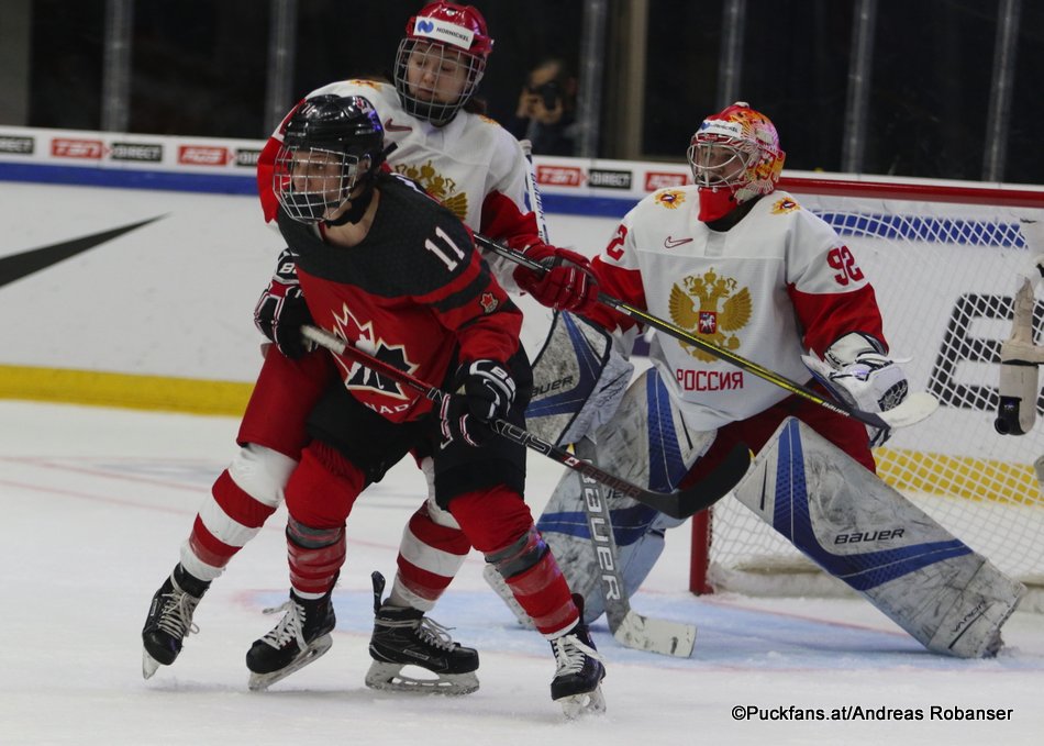 6T4A4452 8. April 2019 950 × 679 6T4A4452 IIHF Women’s World 2019 CAN – RUS Geneviève Lacasse #31, Nadezhda Morozova #92 Espoo Metro Areena ©Puckfans.at/Andreas Robanser