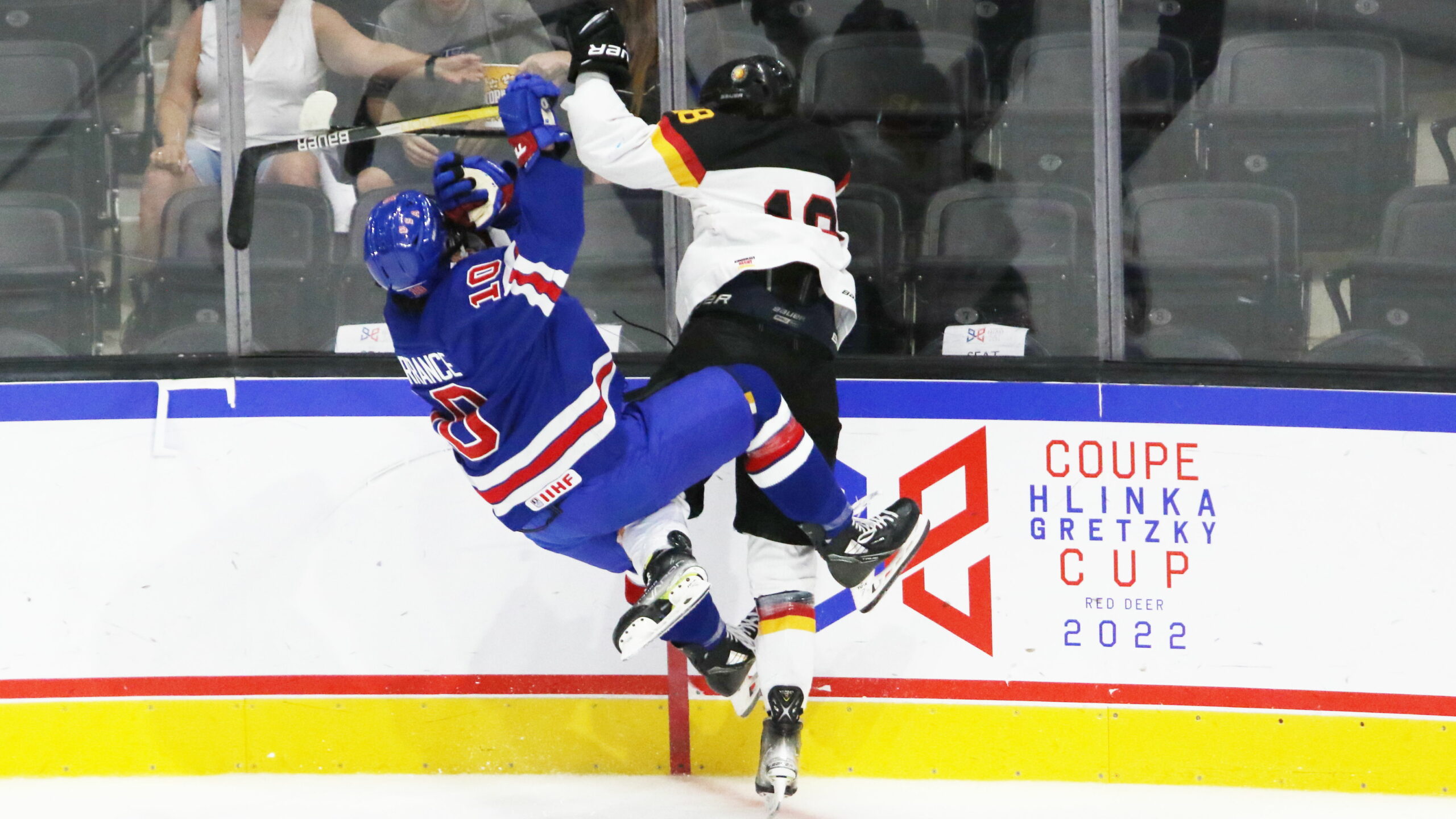 6T4A4673 1. August 2022 2560 × 1440 6T4A4673 Hlinka Gretzky Cup 2022 USA – GER Carey Terrance #10, Lua Niehus #18 Peavey Mart Centrium, Red Deer © Puckfans.at/Andreas Robanser