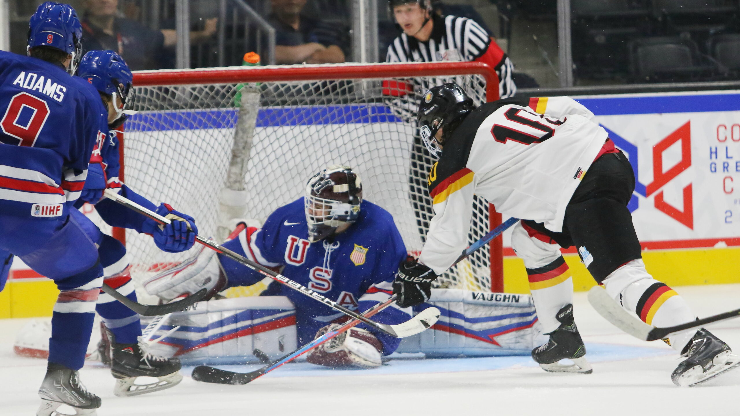 6T4A4988 1. August 2022 2560 × 1440 6T4A4988 Hlinka Gretzky Cup 2022 USA – GER Tanner Adams #9, Calvin Vachon #30, Timo Ruckdaschel #10 Peavey Mart Centrium, Red Deer © Puckfans.at/Andreas Robanser
