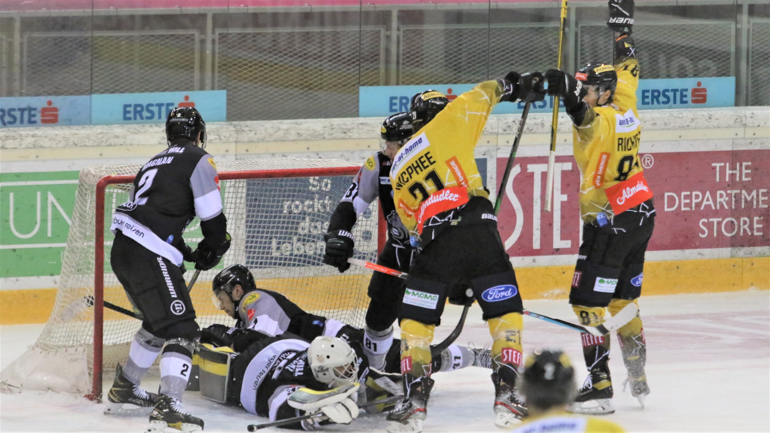 6T4A5081pf-ar 18. Dezember 2020 2560 × 1440 6T4A5081pf-ar Vienna Capitals – Dornbirner EC Olivier Magnan #2, Thomas Höneckl #33, Graham McPhee #21, Marco Richter #81 Erste Bank Arena © Puckfans.at/Andreas Robanser