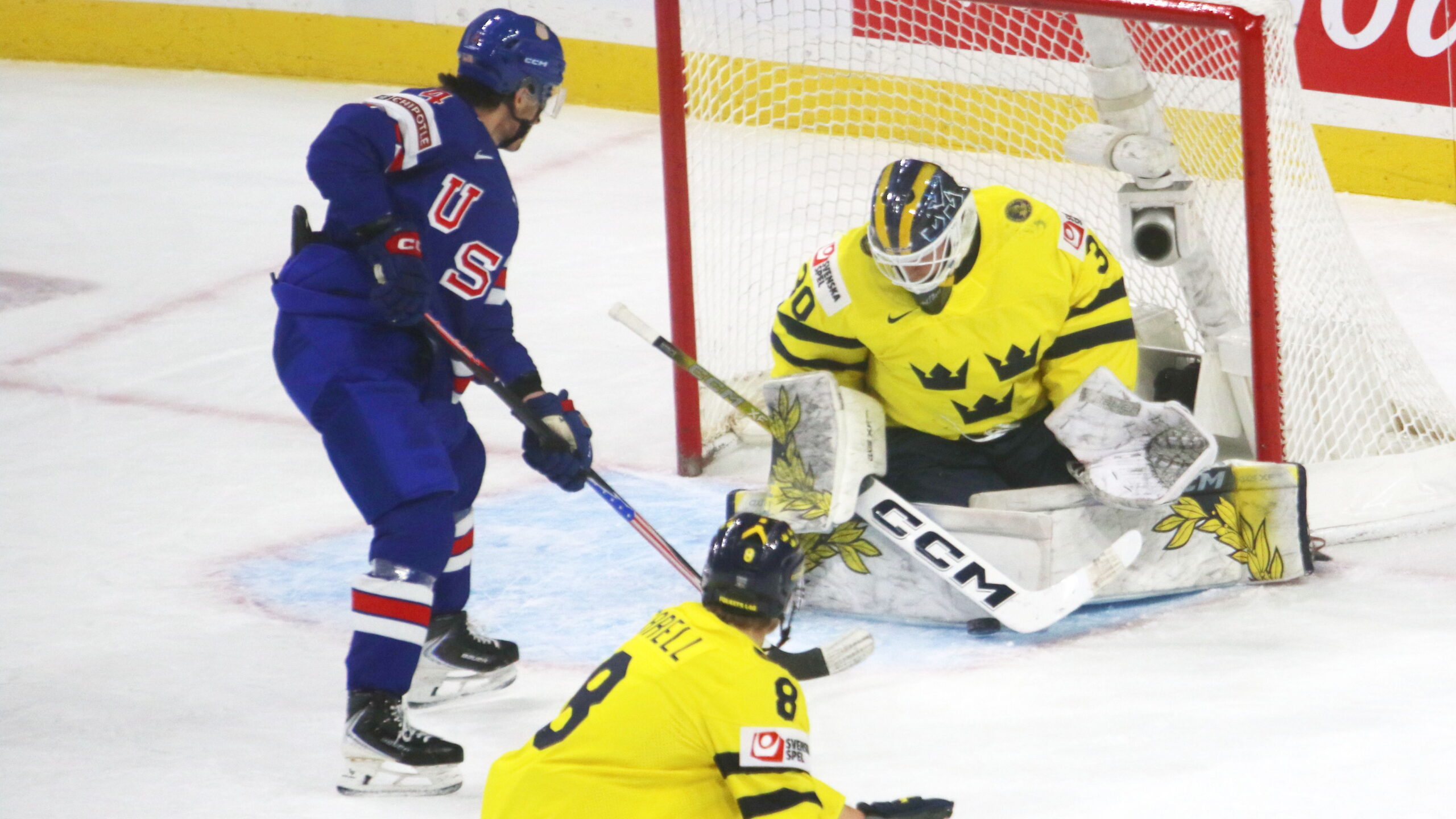 6T4A5214 1. Januar 2026 2560 × 1440 6T4A5214 Teddy Stiga #4, Love Härenstam #30, Felix Carell #8, World Juniors 2026 USA – SWE, Grand Casino Arena, Saint Paul © Puckfans.at / Andreas Robanser