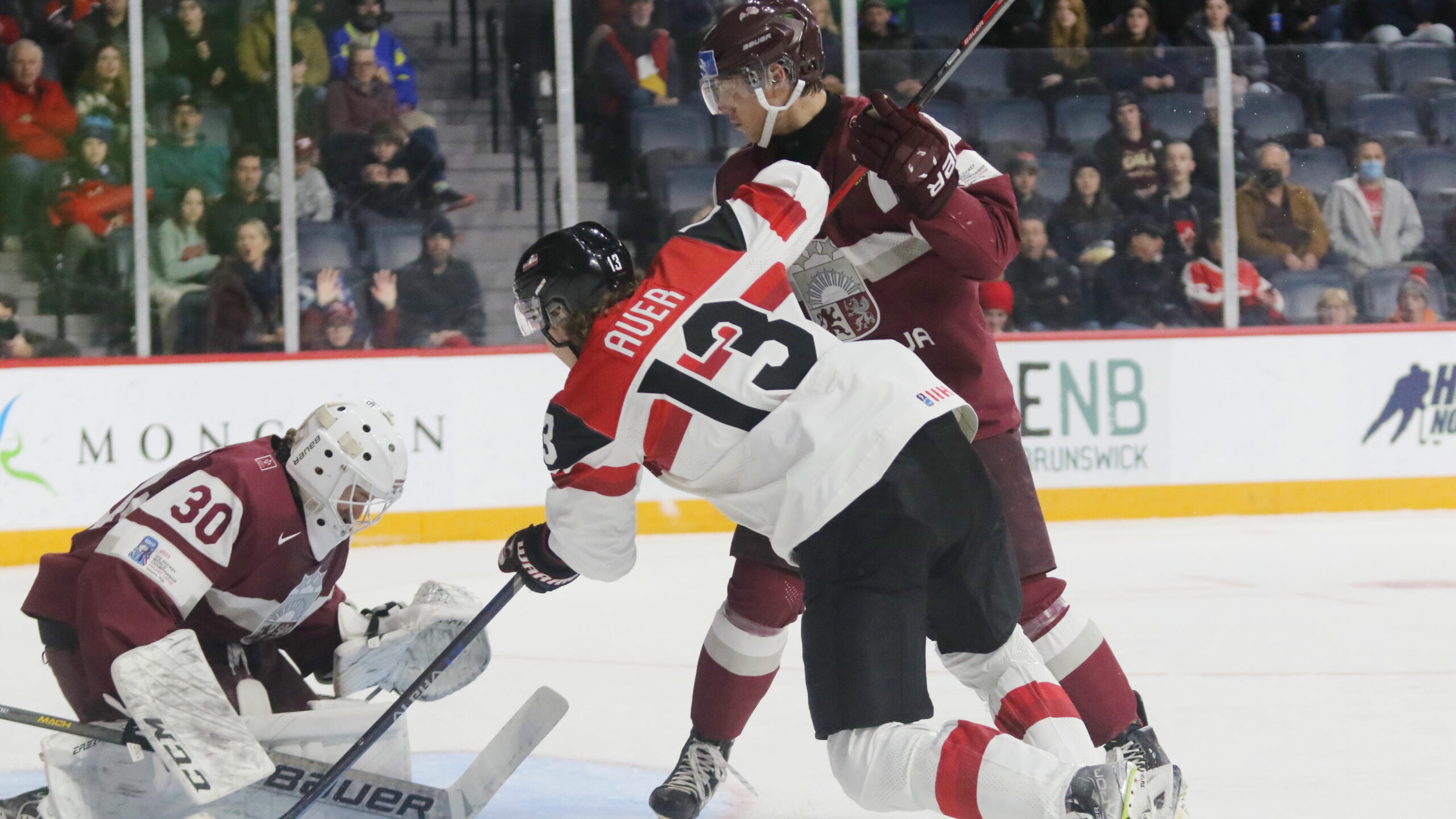 6T4A5569 2. Januar 2023 2560 × 1440 6T4A5569 IIHF World Juniors 2023 Relegation Game 1 AUT – LAT Patriks Berzins #30, Luca Auer #13 Scotiabank Centre, Halifax © Puckfans.at / Andreas Robanser