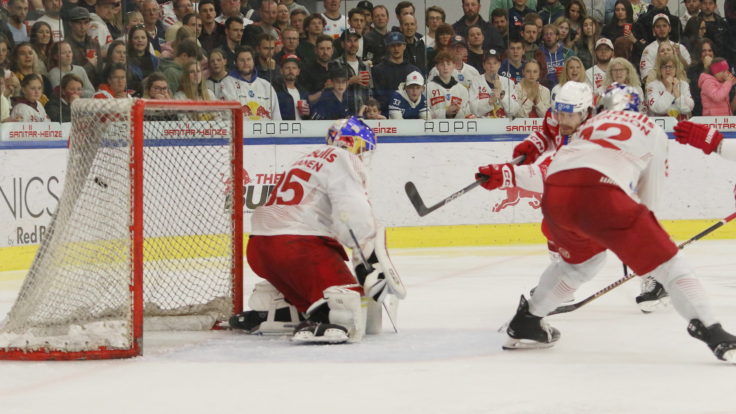 6T4A5628 12. April 2024 2560 × 1440 6T4A5628 ICEHL Final Game 4 EC Red Bull Salzburg – EC KAC Atte Tolvanen #35, Matt Fraser #90 Eisarena, Salzburg , © Puckfans.at / Andreas Robanser