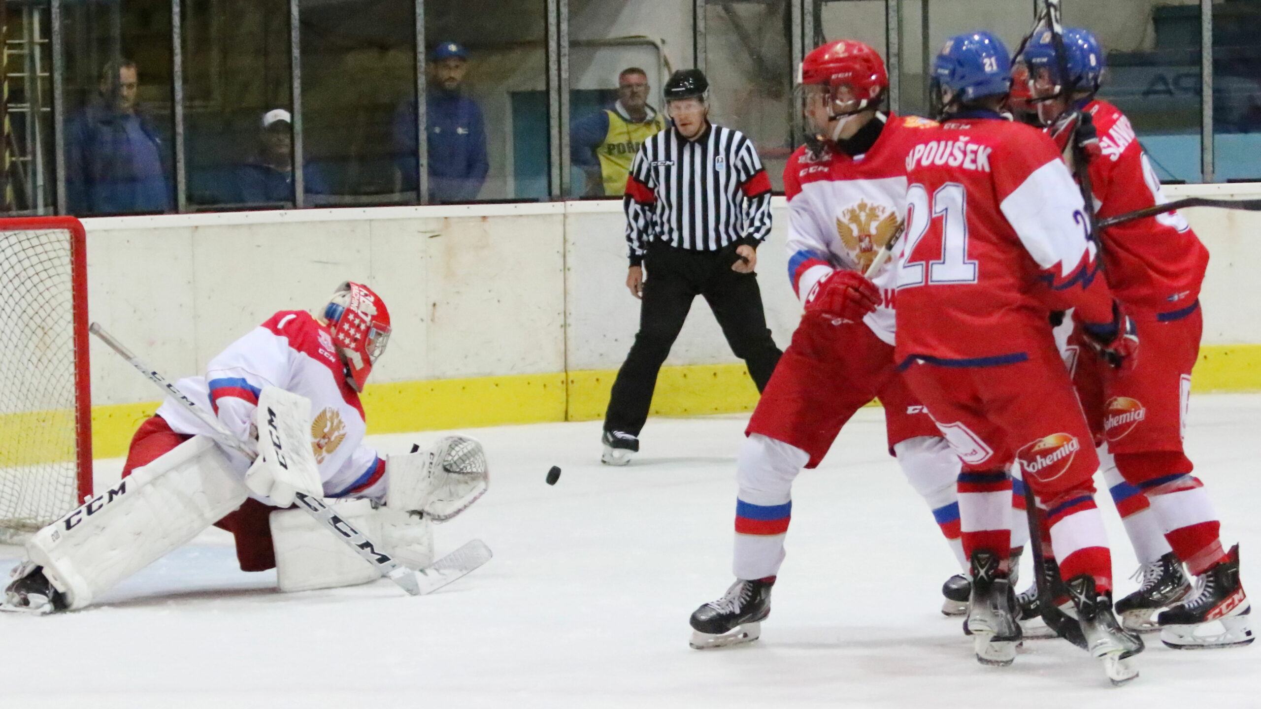 6T4A5841 4. August 2021 2560 × 1440 6T4A5841 Hlinka Gretzky Cup 2021 U18 CZE – U18 RUS Sergei Ivanov #1, Robin Sapousek #21, Fosfa Arena, Breclav © Puckfans.at/Andreas Robanser