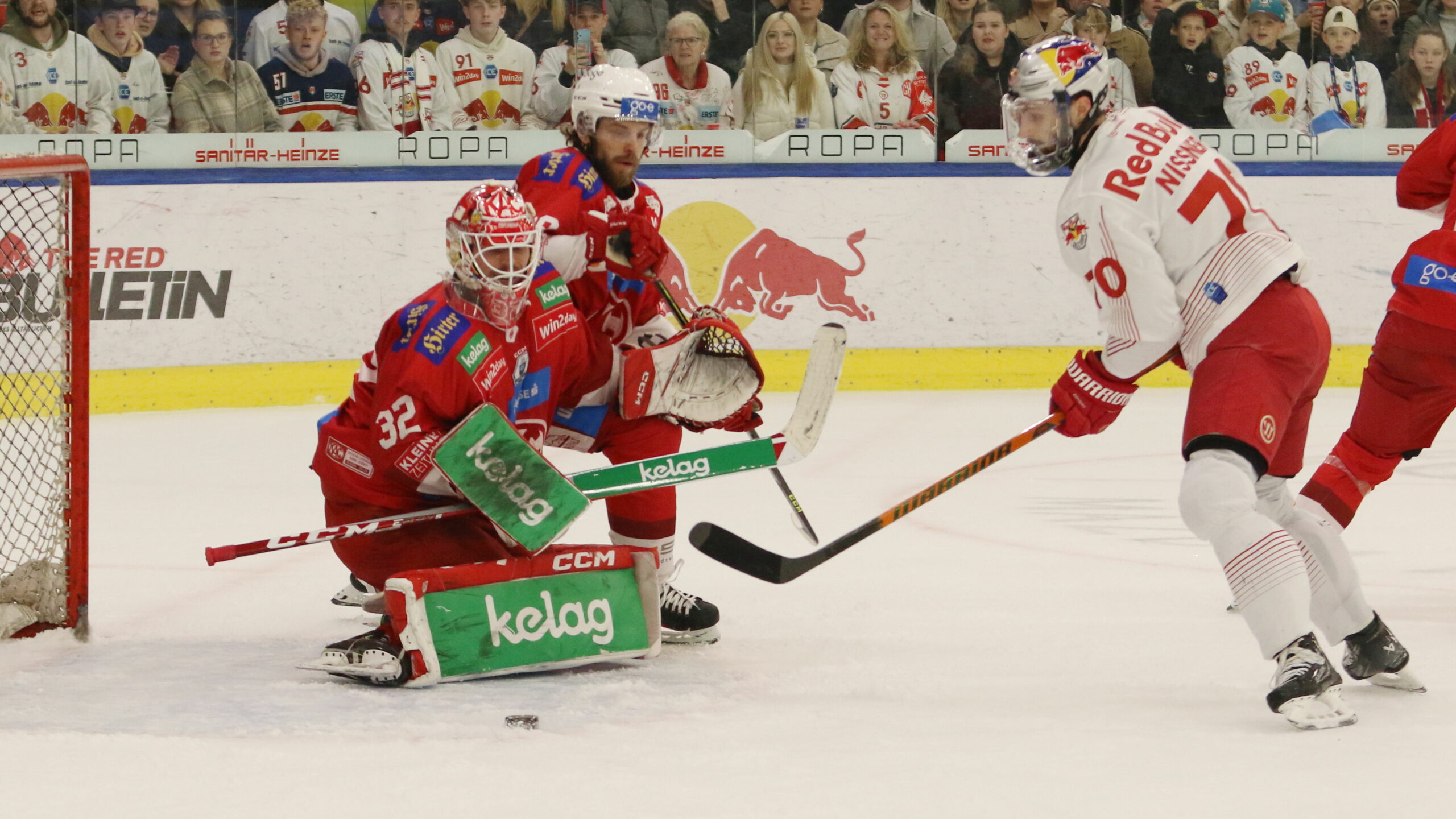 6T4A6034 16. April 2024 2560 × 1440 6T4A6034 ICEHL Final Game 6 EC Red Bull Salzburg – EC KAC Sebastian Dahm #32, Benjamin Nissner #70 Eisarena, Salzburg , © Puckfans.at / Andreas Robanser