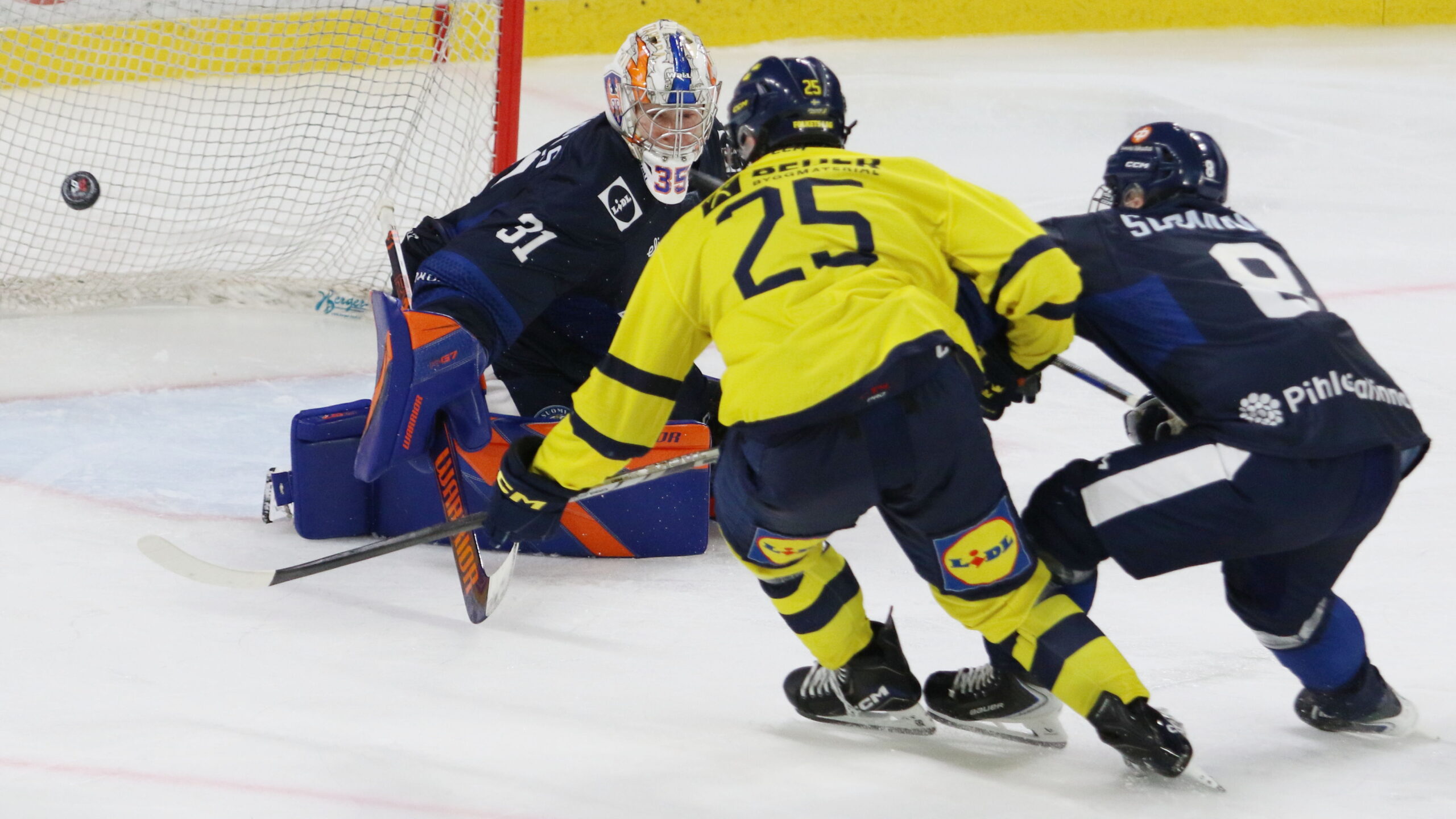 William Gammals #31, Max Isaksson #25, Julius Suominen #8, Hlinka Gretzky Cup 2025, Semifinal SWE – FIN, Pavol Demitra Arena, Trencin © Puckfans.at / Andreas Robanser