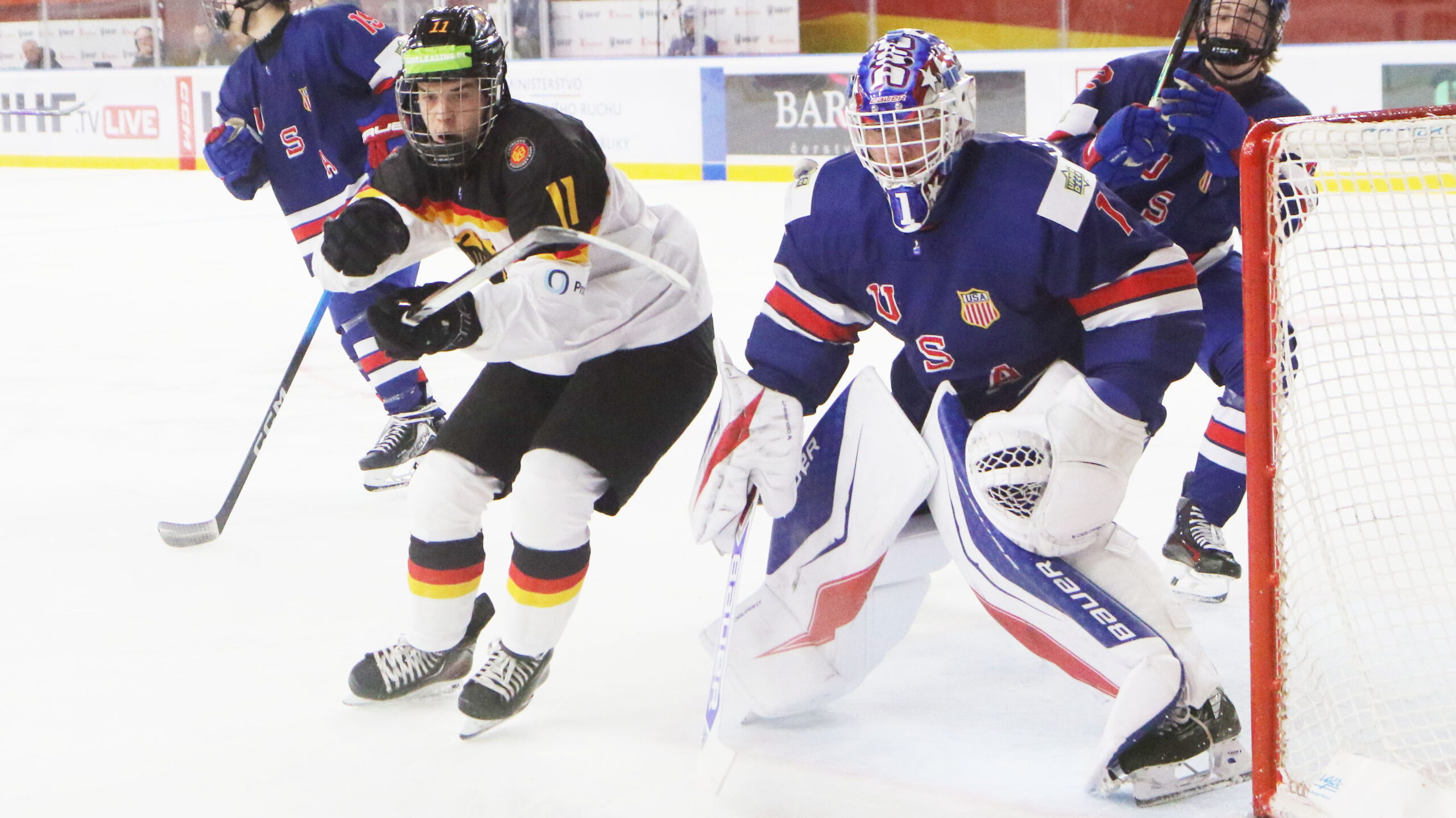 Leon Lell #11, Luke Carrithers #1, IIHF U18 World Championship 2026 USA – GER, Vladimír Dzurilla Arena, Bratislava, © Puckfans.at / Andreas Robanser