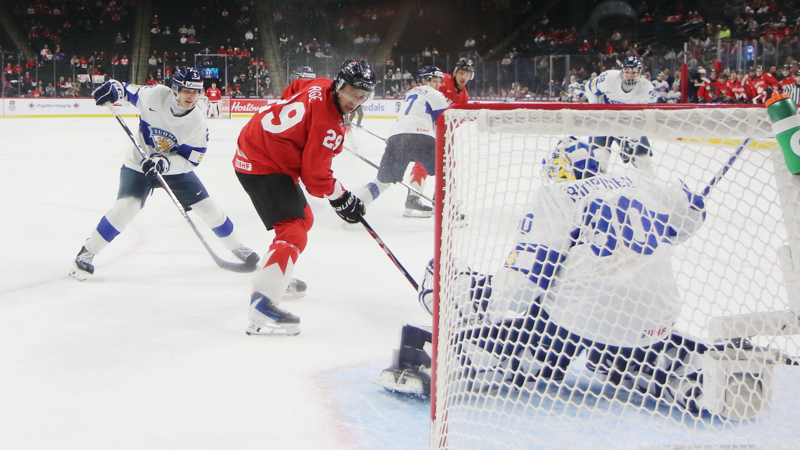 Mitja Jokinen #2, Michael Hage #29, Petteri Rimpinen #30, World Juniors 2026 Bronze Game CAN – FIN, Grand Casino Arena, Saint Paul © Puckfans.at / Andreas Robanser