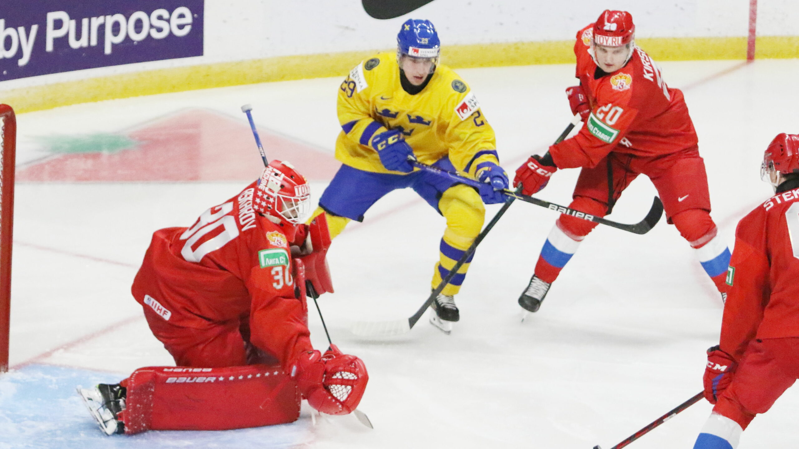 6T4A7313 27. Dezember 2021 2560 × 1440 6T4A7313 IIHF World Juniors 2022 RUS – SWE Yaroslav Askarov #30, Daniel Torgersson #29, Kirill Kirsanov #20 Peavey Mart Centrium, Red Deer © Puckfans.at/Andreas Robanser