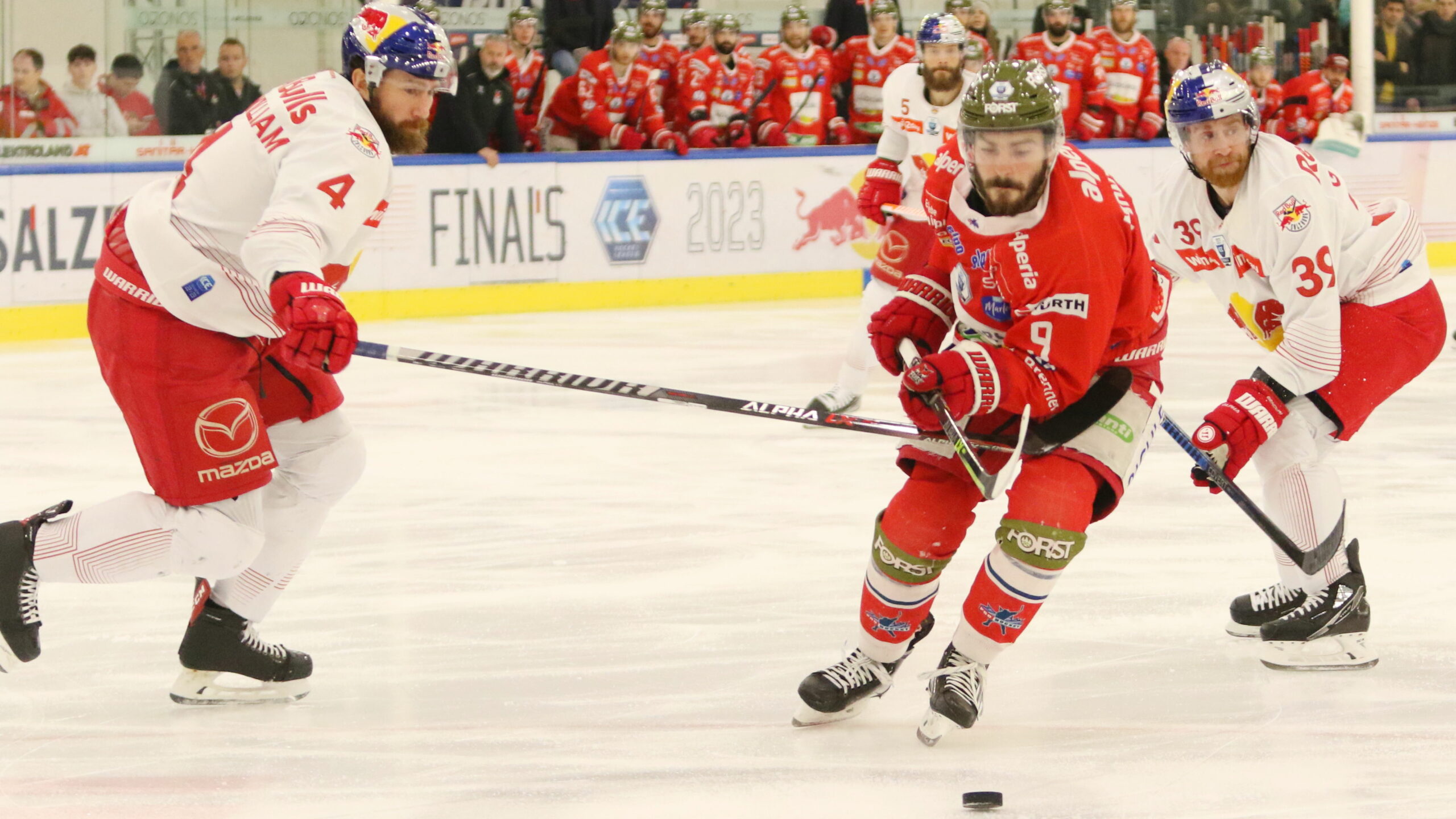 6T4A7436 14. April 2023 2560 × 1440 6T4A7436 ICEHL Final Game 4 EC Red Bull Salzburg – HCB Südtirol Andrew MacWilliam #4, Daniel Mantenuto #9, Eisarena Salzburg © Puckfans.at / Andreas Robanser