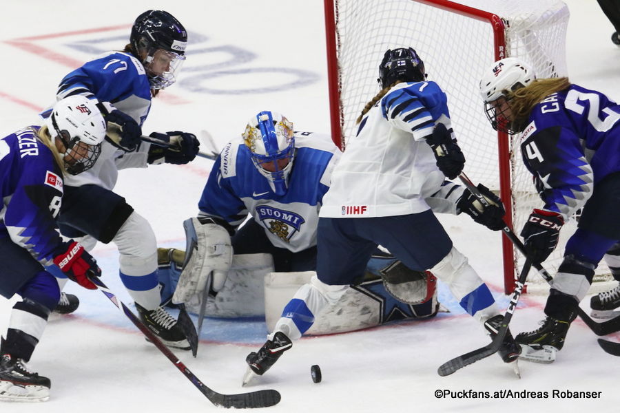 IIHF Women’s World 2019 Gold Medal Game USA – FIN 14. April 2019 900 × 600 IIHF Women’s World 2019 Gold Medal Game USA – FIN IIHF Women’s World 2019 Gold Medal Game USA – FIN Susanna Tapani #77, Noora Raty #41, Nelii Laitinen #07 Dani Cameranesi #24 Espoo Metro Areena ©Puckfans.at/Andreas Robanser