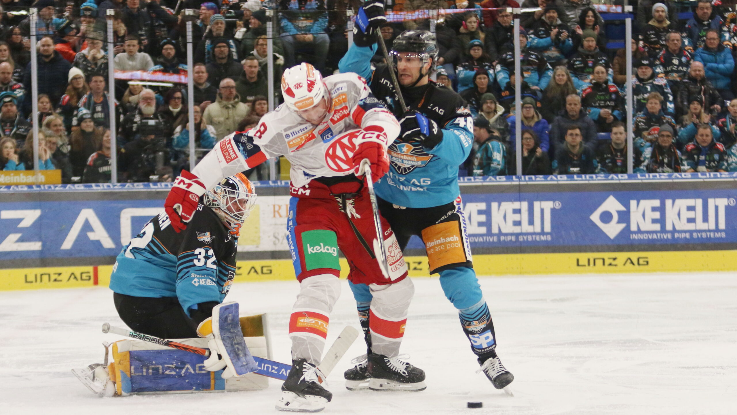 Rasmus Tirronen #32, Nick Petersen #8, Niklas Würschl #46., ICEHL Round 41 Black Wings Linz – EC KAC, Linz AG Eisarena, © Puckfans.at / Andreas Robanser