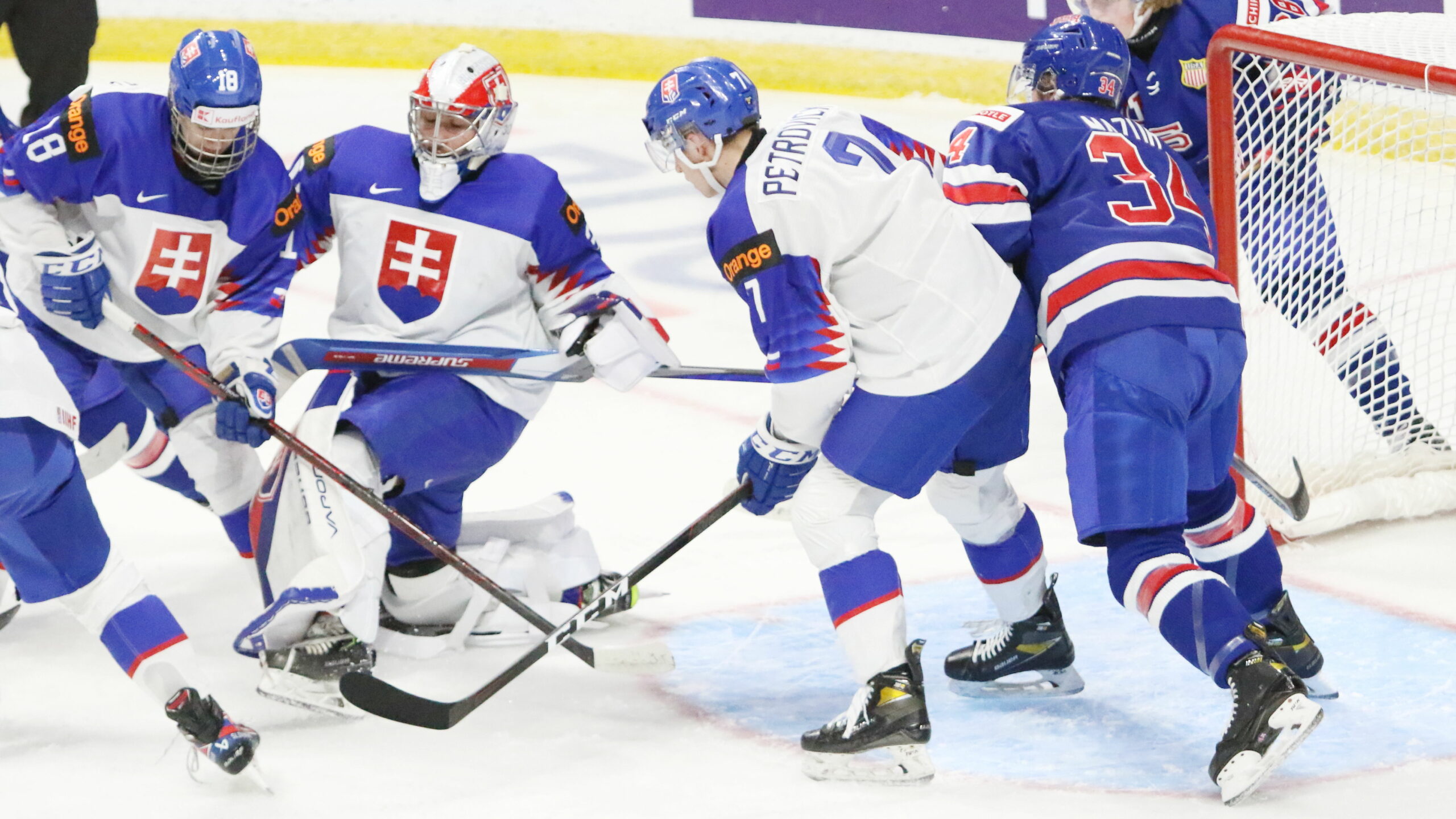 6T4A7997 27. Dezember 2021 2560 × 1440 6T4A7997 IIHF World Juniors 2022 USA – SVK Servác Petrovský #18, Simon Latkoczy #30, Rayen Petrovický #7, Carter Mazur #34 Peavey Mart Centrium, Red Deer © Puckfans.at/Andreas Robanser