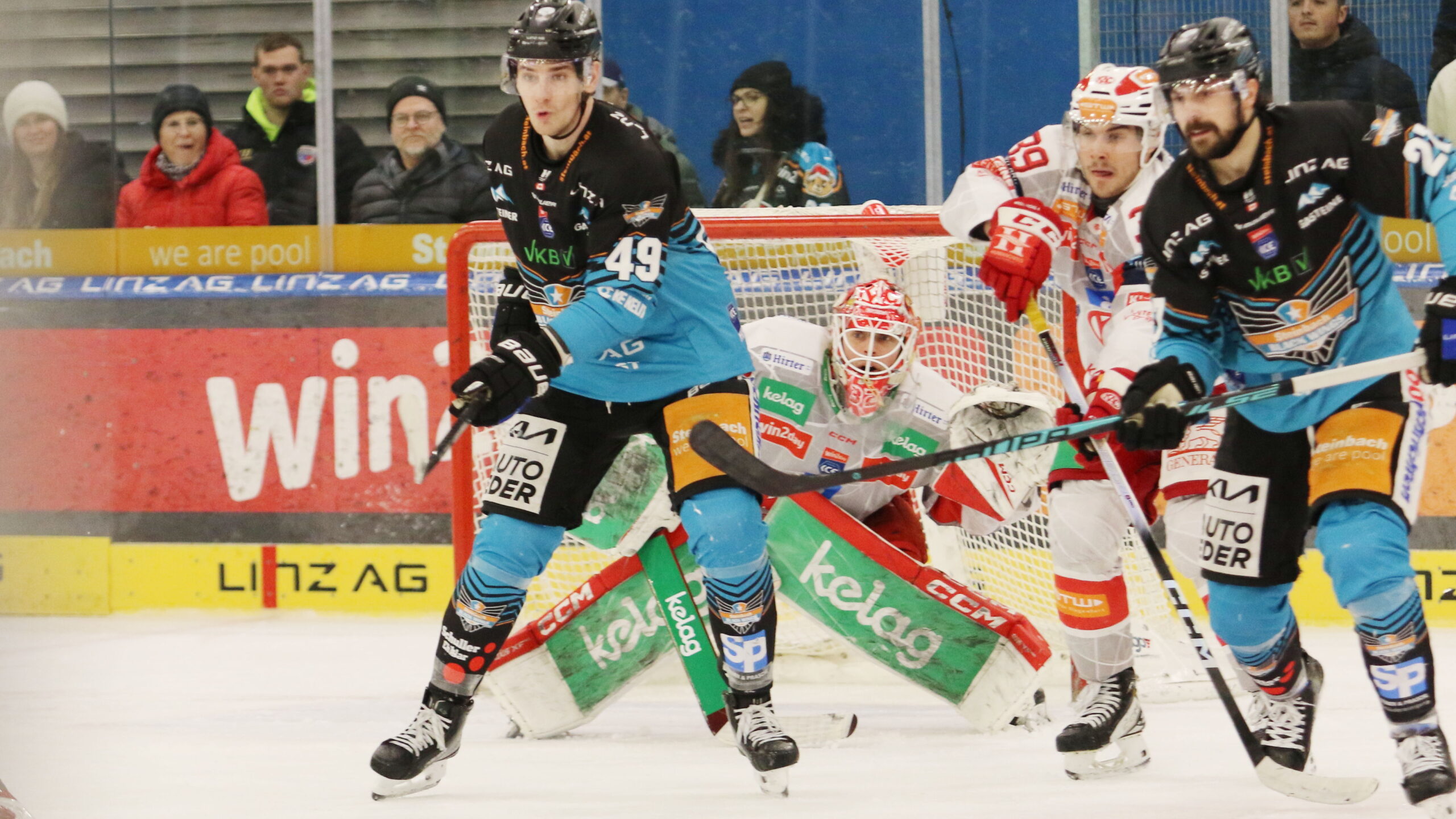 Graham Knott #49, Sebastian Dahm #32, Filip Simovic #39, Shawn St-Amant #27, ICEHL Round 41 Black Wings Linz – EC KAC, Linz AG Eisarena, © Puckfans.at / Andreas Robanser