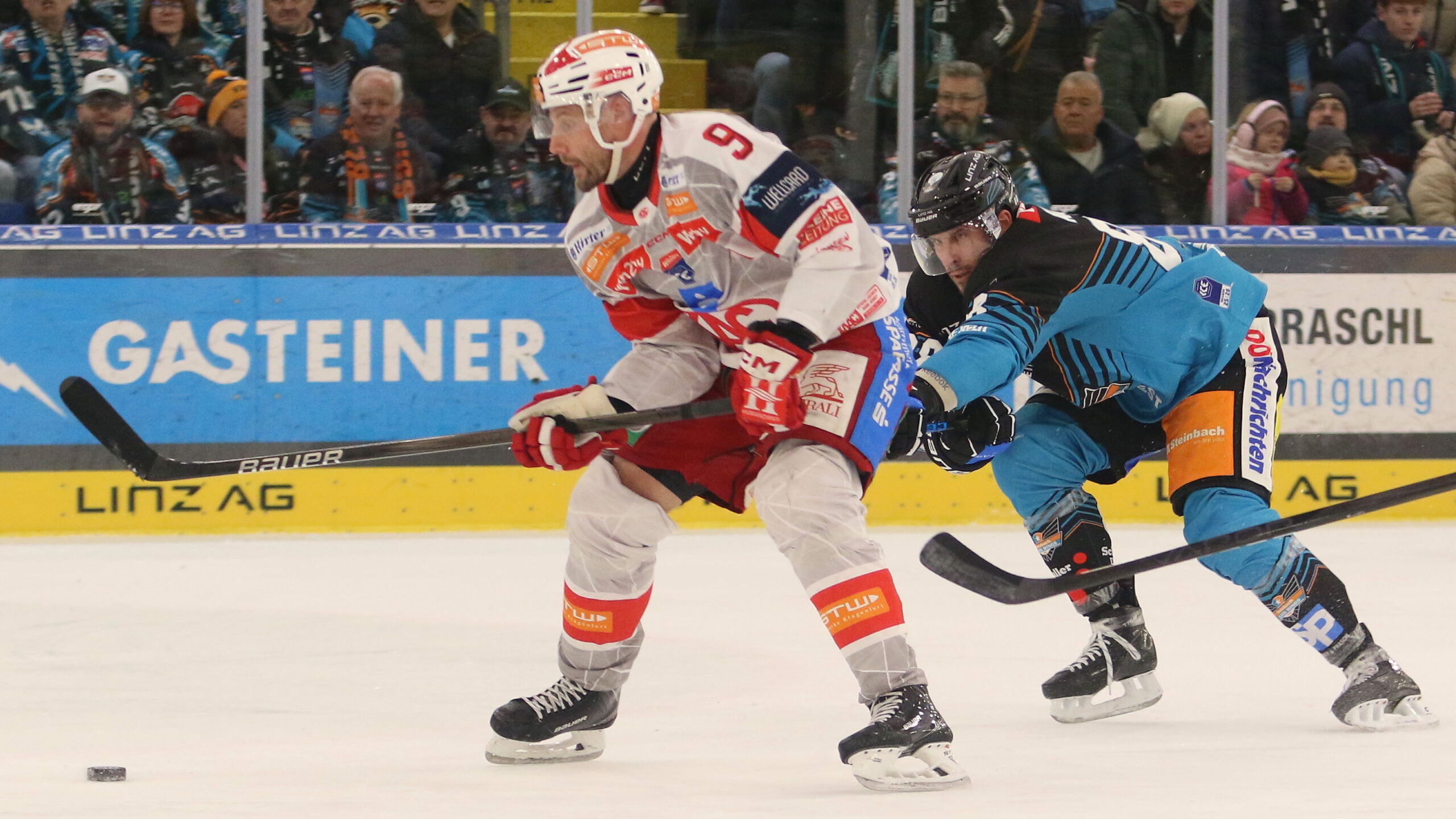 Jan Mursak #9, Yohann Auvitu #88, ICEHL Round 41 Black Wings Linz – EC KAC, Linz AG Eisarena, © Puckfans.at / Andreas Robanser