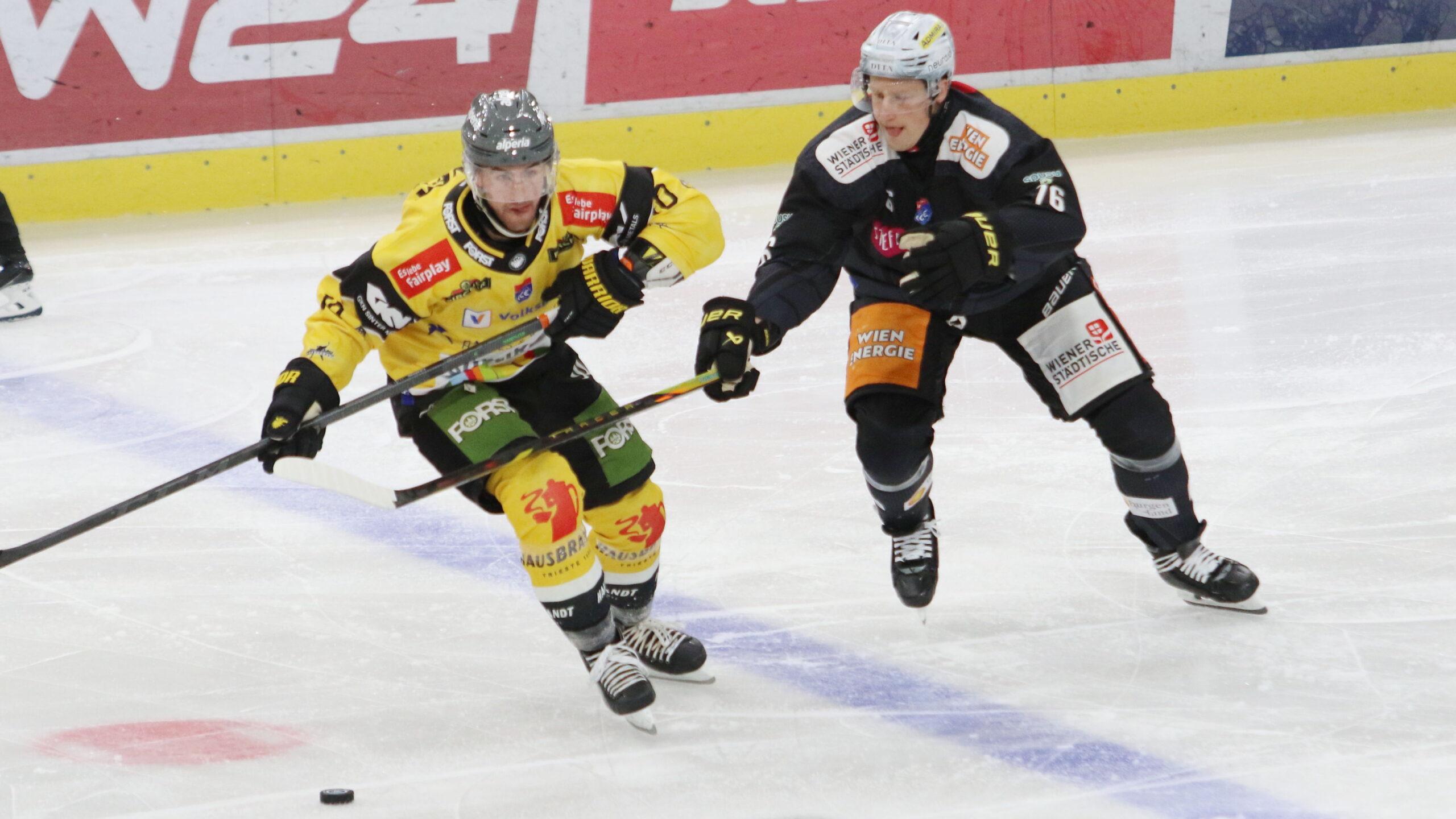 6T4A8410 4. Oktober 2025 2560 × 1440 6T4A8410 Cole Bardreau #10, Sam Antonitsch #76, ICEHL Round 8 Vienna Capitals – HC Pustertal, Steffl Arena, © Puckfans.at / Andreas Robanser