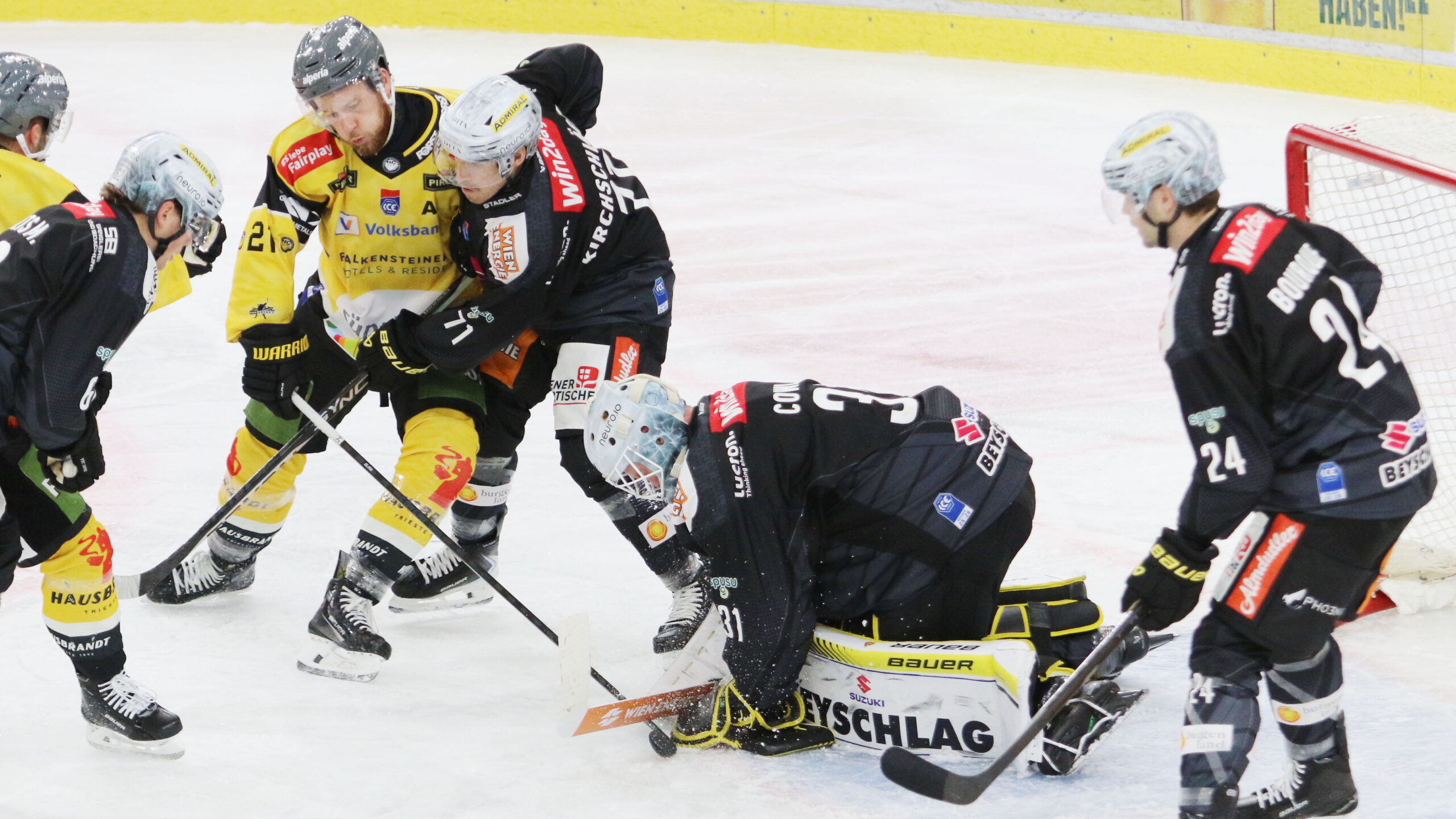 6T4A8433 4. Oktober 2025 2560 × 1440 6T4A8433 Daniel Glira #21, Erik Kirchschläger #71, Evan Cowley #31, Simon Bourque #24, ICEHL Round 8 Vienna Capitals – HC Pustertal, Steffl Arena, © Puckfans.at / Andreas Robanser