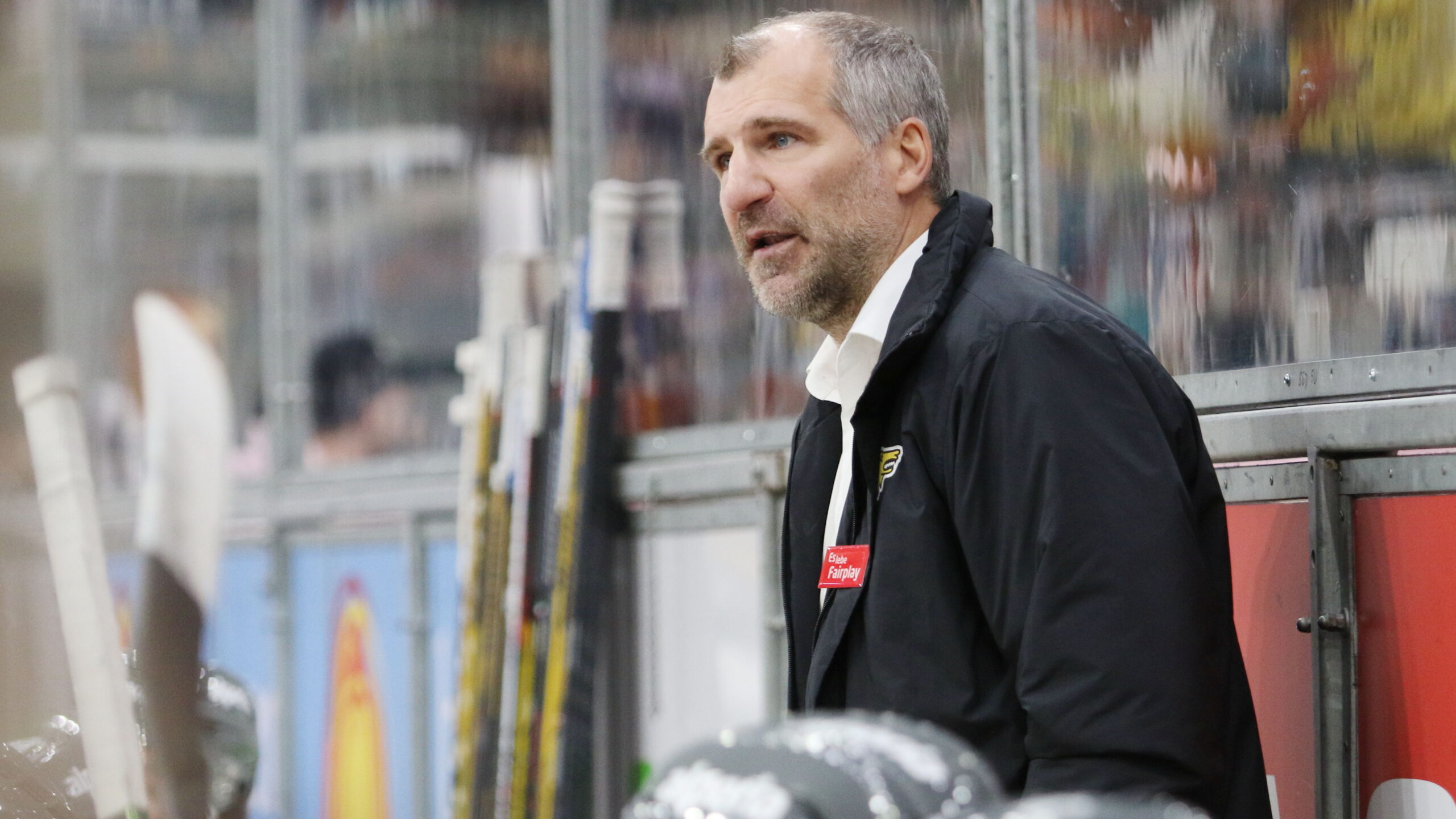 6T4A8465 4. Oktober 2025 2560 × 1440 6T4A8465 HC Pustertal Head Coach Jason Jaspers, ICEHL Round 8 Vienna Capitals – HC Pustertal, Steffl Arena, © Puckfans.at / Andreas Robanser