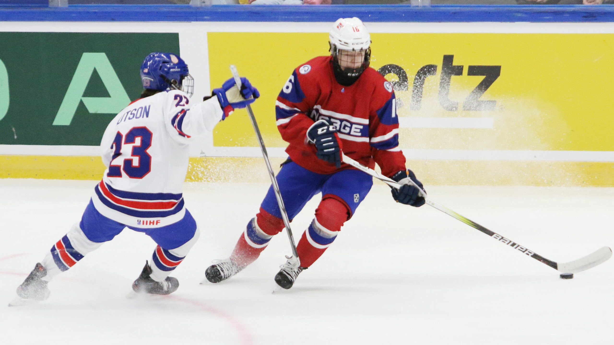 6T4A8521 27. April 2024 2560 × 1440 6T4A8521 IIHF U18 World Championship 2024 NOR – USA Cole Hutson #23, Mikkel Eriksen #16 Metro Arena, Espoo FIN © Puckfans.at / Andreas Robanser