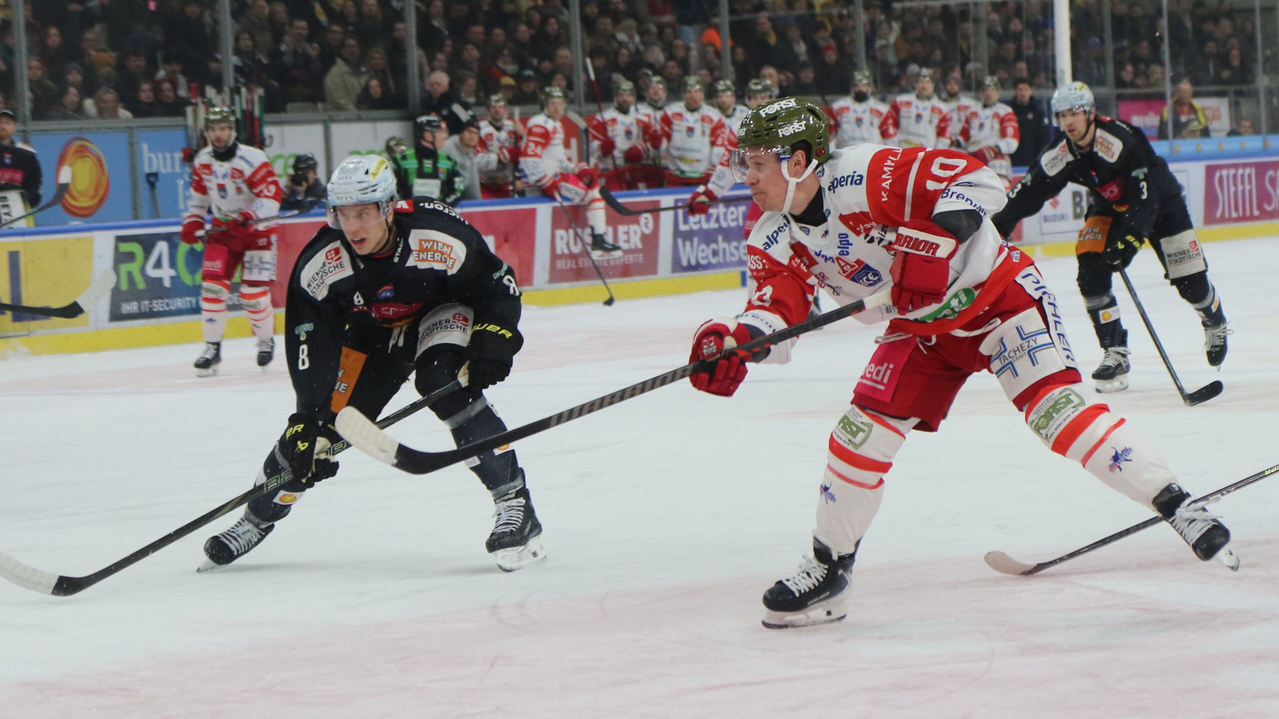 6T4A8543 25. Januar 2026 2560 × 1440 6T4A8543 Nelson Nogier #8, Dustin Gazley #10, ICEHL Round 43 Vienna Capitals – HCB Südtirol, Steffl Arena, © Puckfans.at / Andreas Robanser